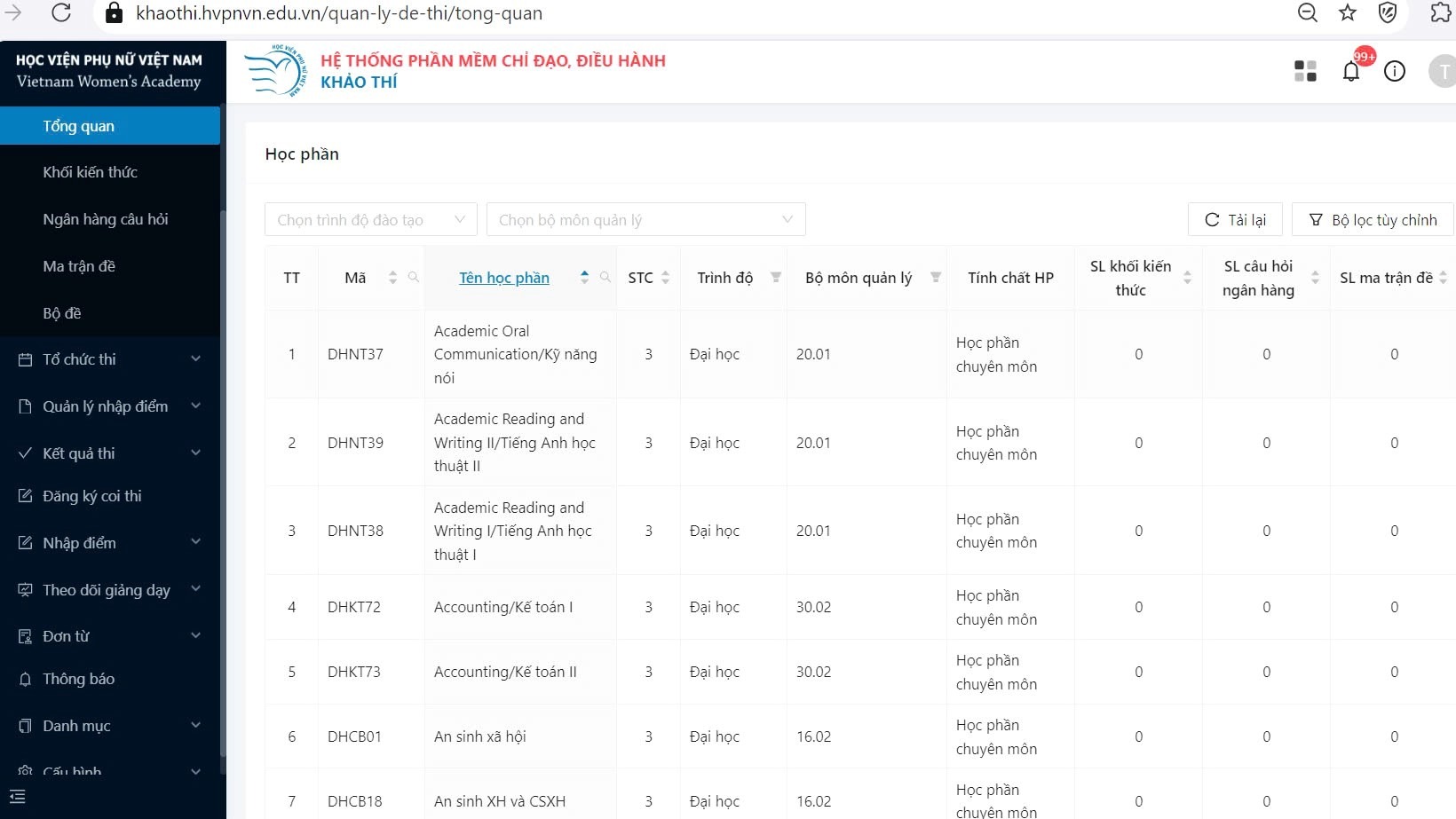 Hiện nay, HVPNVN đã và đang thực hiện chuyển đổi số cho công tác khảo thí, đánh dấu một bước tiến quan trọng trong việc hiện đại hóa và nâng cao hiệu quả của hệ thống đánh giá. Quá trình chuyển đổi số này bao gồm việc ứng dụng công nghệ thông tin vào các khâu của công tác khảo thí, từ việc xây dựng và quản lý ngân hàng đề thi, tổ chức thi trực tuyến, đến chấm thi tự động và phân tích kết quả.
