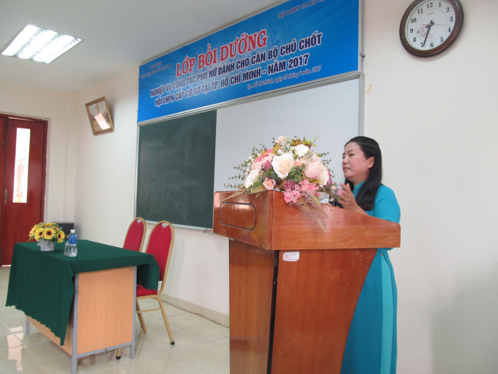 Phát biểu khai giảng khóa học, ThS. Đào Thị Tuyết Hạnh chào mừng 120 học viên đến từ 115 cơ sở Hội phụ nữ TP Hồ Chí Minh. Trong thời gian vừa qua Phân hiệu Học viện Phụ nữ Việt Nam đã phối hợp cùng với Hội LHPN thành phố Hồ Chí Minh tổ chức rất nhiều lớp bồi dưỡng nghiệp vụ công tác Hội cho đội ngũ cán bộ Hội cơ sở nhằm trang bị kiến thức, kỹ năng và cách xử lý các tình huống trong công tác Hội. Để các chị học viên có điều kiện tham gia các hoạt động trong quá trình học tập, học viên được chia làm hai lớp và thời gian học cũng linh hoạt tuần học 2 buổi/lớp để các chị vừa tham gia khóa học vừa công tác tại địa phương, đơn vị. Phó Giám đốc Phân hiệu Học viện Phụ nữ Việt Nam – Đào Thị Tuyết Hạnh mong muốn, trong thời gian tập huấn, các học viên cần phát huy tinh thần tự giác, nêu cao ý thức trách nhiệm của người cán bộ Hội, tích cực học tập, nghiên cứu, trao đổi và tham gia đầy đủ các chương trình, nội dung của lớp tập huấn để đạt được kết quả cao nhất.