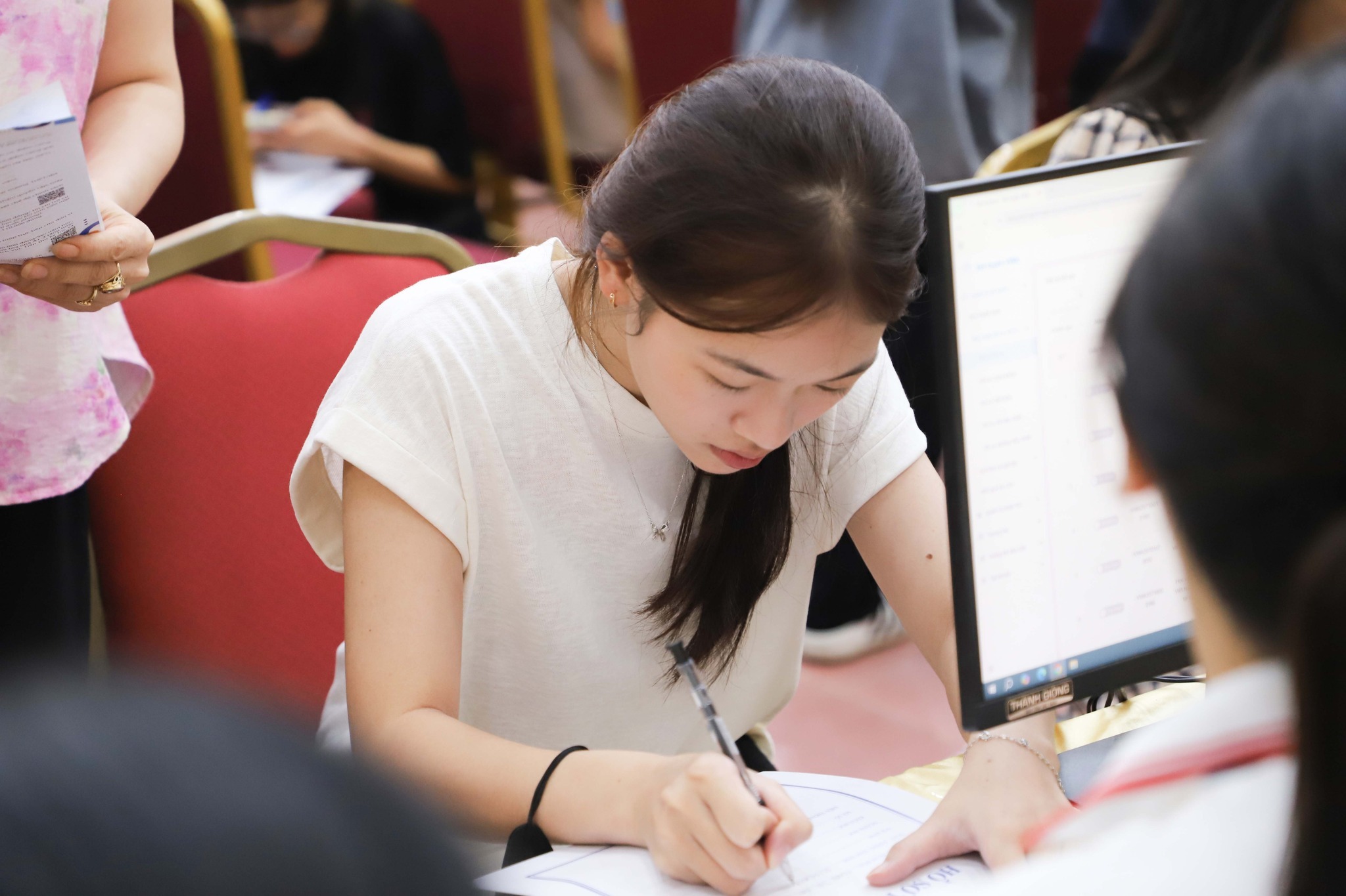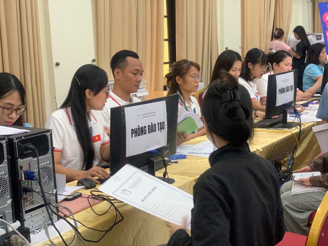 Để tạo điều kiện thuận lợi nhất, Học viện đã chuẩn bị kỹ lưỡng từ khâu đón tiếp, bố trí bàn tiếp nhận, đến việc huy động đội ngũ cán bộ, giảng viên và sinh viên tình nguyện. Các thủ tục nhập học được hướng dẫn rõ ràng, nhanh gọn: nộp hồ sơ, làm thẻ sinh viên, đo đồng phục, đăng ký ký túc xá, tham gia các Câu lạc bộ sinh viên. Góc check-in rực rỡ tại sảnh nhà A2 cũng thu hút đông đảo tân sinh viên và phụ huynh lưu giữ kỷ niệm trong ngày đầu tiên.
