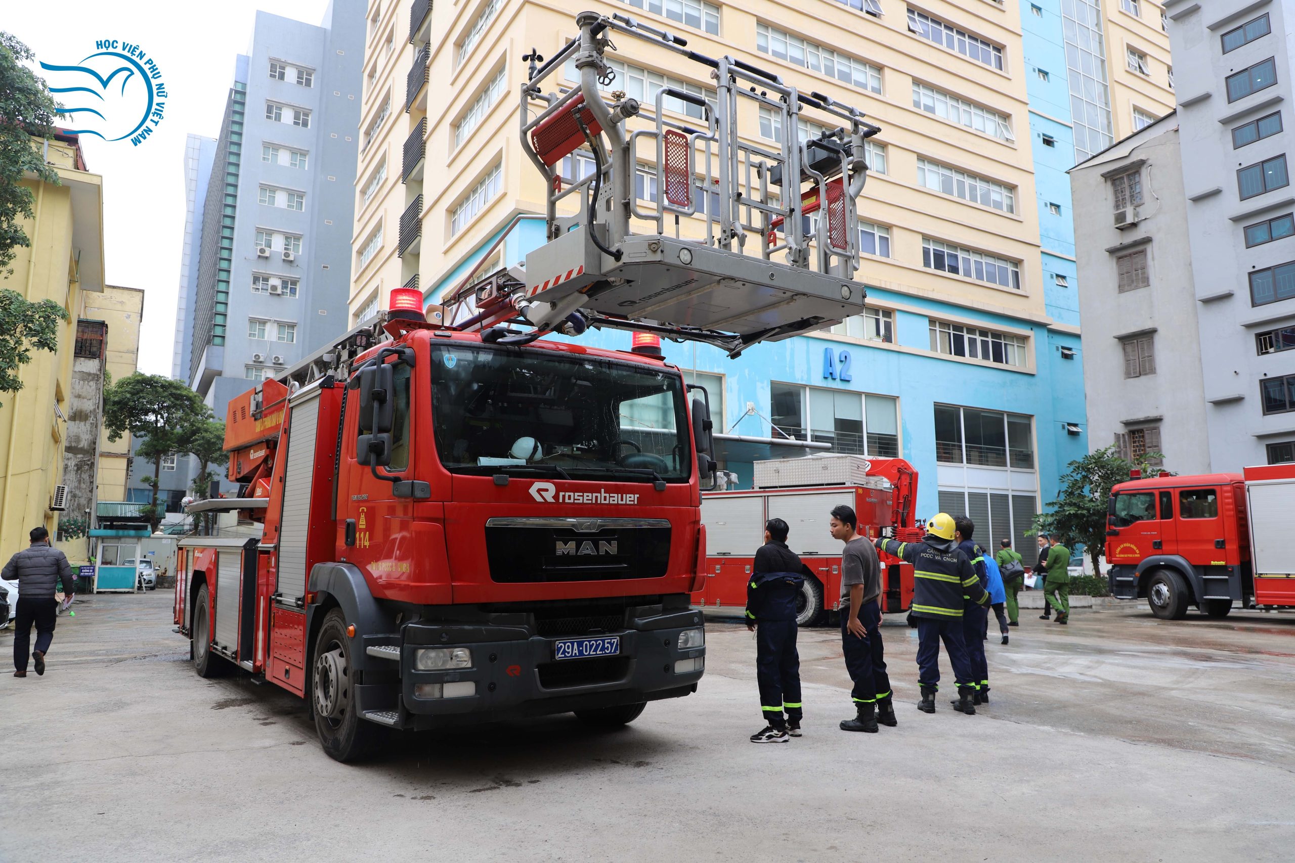 Buổi thực tập cũng nhấn mạnh tầm quan trọng của sự phối hợp giữa lực lượng PCCC cơ sở và các đơn vị chuyên nghiệp. Với sự hỗ trợ của Phòng Cảnh sát PCCC&CNCH, các phương tiện hiện đại như xe thang và xe chữa cháy đã được triển khai, đảm bảo tính chuyên nghiệp và hiệu quả cao nhất.