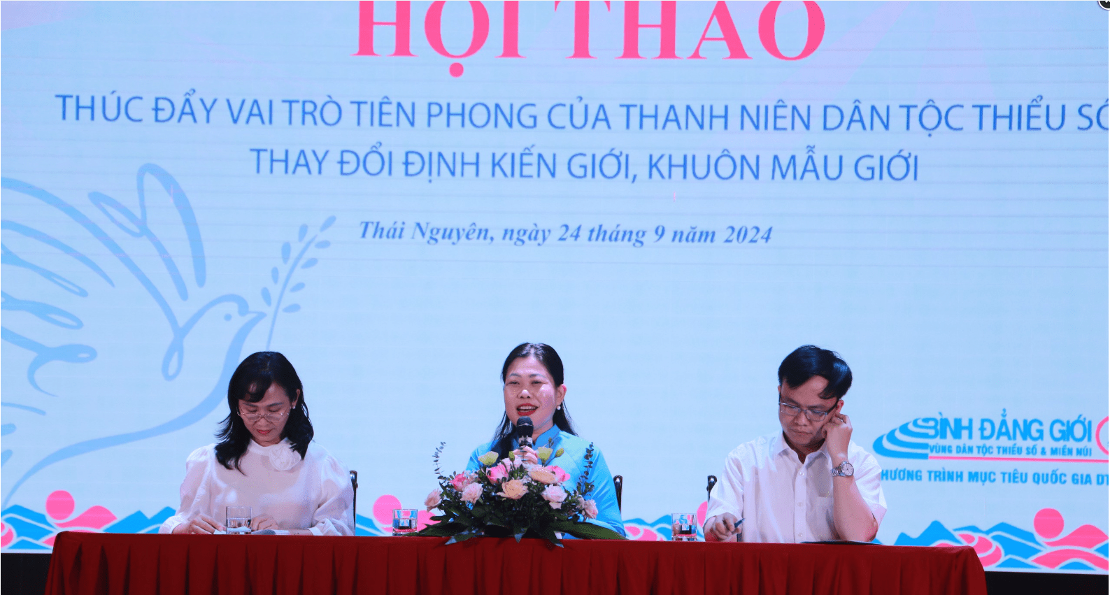 Phát biểu khai mạc Hội thảo “Thúc đẩy vai trò tiên phong của thanh niên dân tộc thiểu số trong thay đổi định kiến giới, khuôn mẫu giới”, Phó Chủ tịch Hội LHPN Việt Nam Nguyễn Thị Thu Hiền cho biết: “Việt Nam là quốc gia đa dân tộc, có 54 dân tộc anh em cùng chung sống lâu đời, trong đó có 53 DTTS. Do điều kiện sinh sống khá đặc thù và do nhiều nguyên nhân, mặc dù Đảng và Nhà nước đã có nhiều chủ trương, chính sách đầu tư phát triển kinh tế, xã hội trên các địa bàn vùng đồng bào DTTS và miền núi, song đời sống của một bộ phận đồng bào DTTS và miền núi vẫn còn gặp nhiều khó khăn, nhiều vấn đề xã hội đặt ra còn phải tiếp tục giải quyết, trong đó có vấn đề bất bình đẳng giới”. Phó Chủ tịch Hội LHPN Việt Nam Nguyễn Thị Thu Hiền khẳng định vai trò quan trọng của thanh niên dân tộc thiểu số trong việc thay đổi những định kiến và khuôn mẫu giới đã tồn tại từ lâu trong xã hội: “Thanh niên dân tộc thiểu số không chỉ là những nhân tố trẻ trung, năng động và sáng tạo, mà còn là lực lượng tiên phong trong việc thúc đẩy bình đẳng giới, tạo ra những thay đổi tích cực cho cộng đồng và xã hội.”