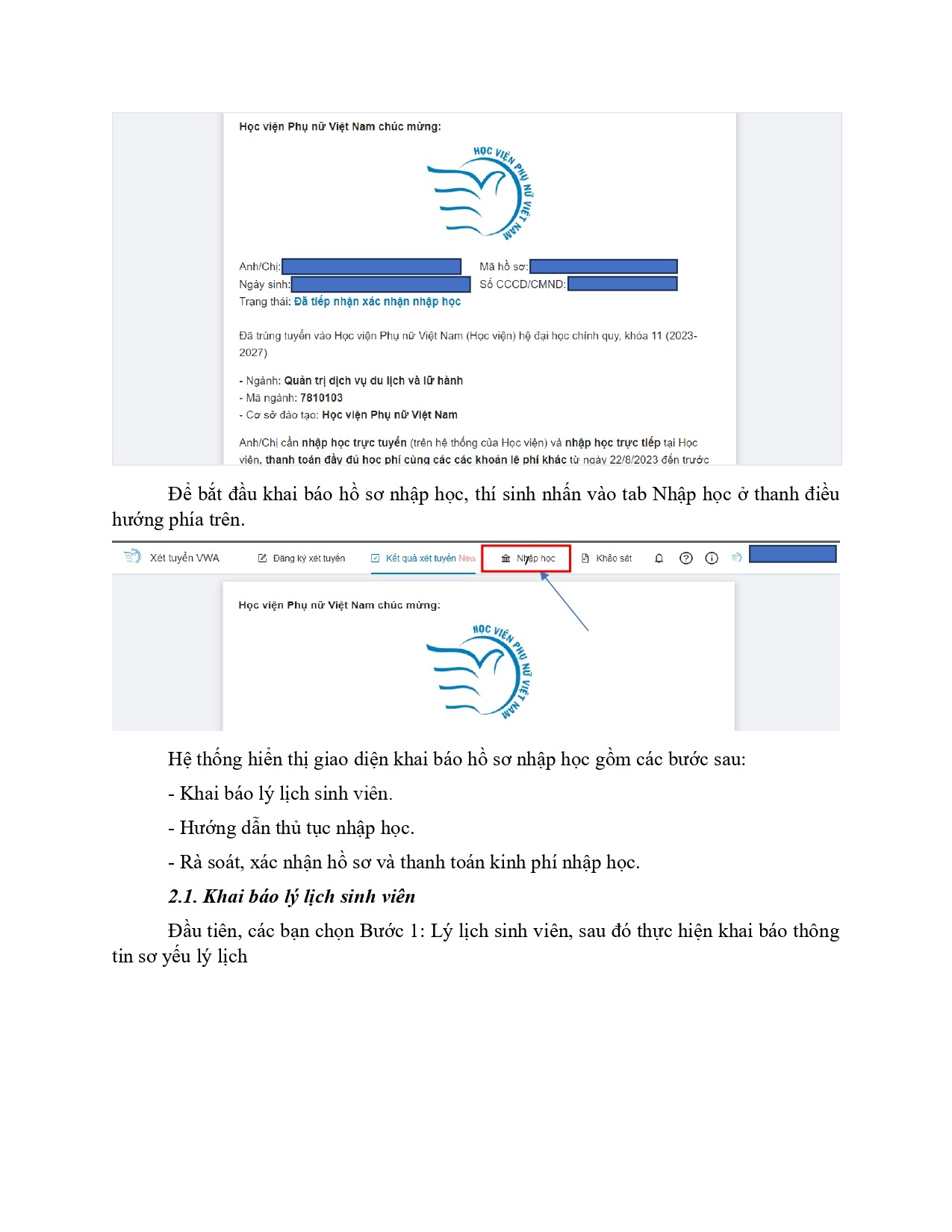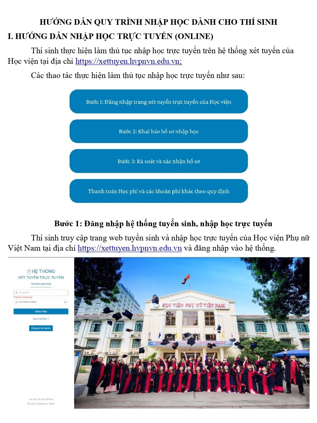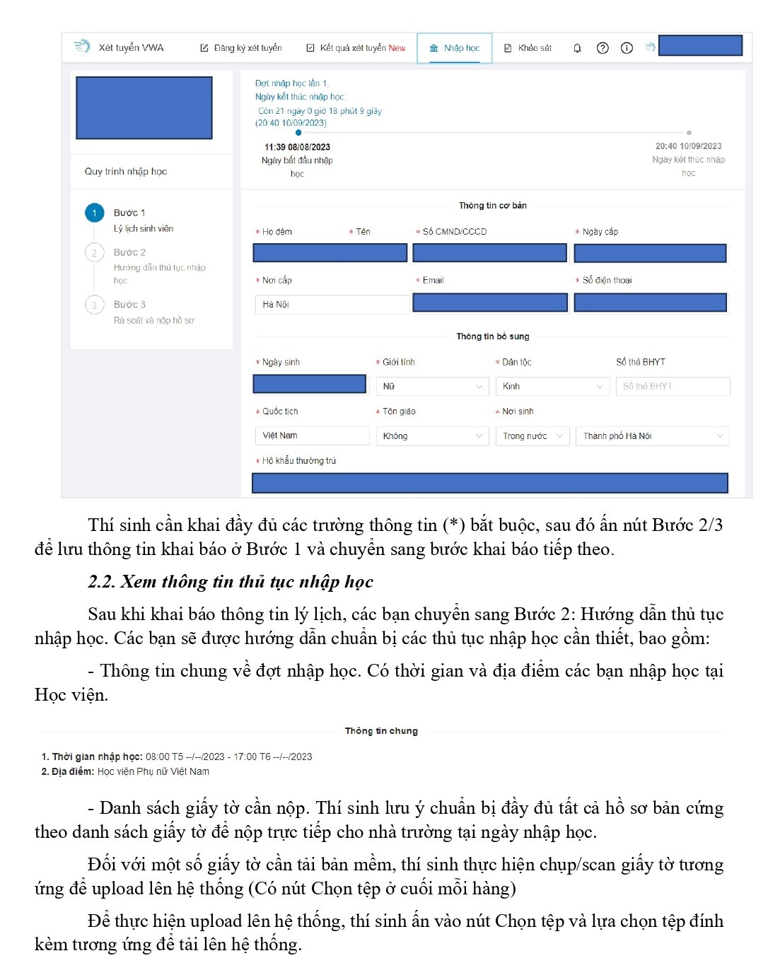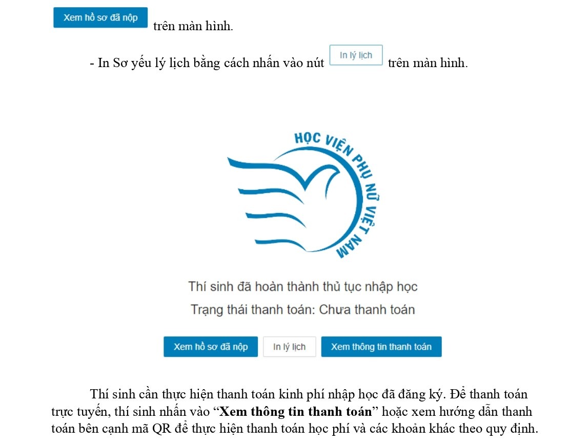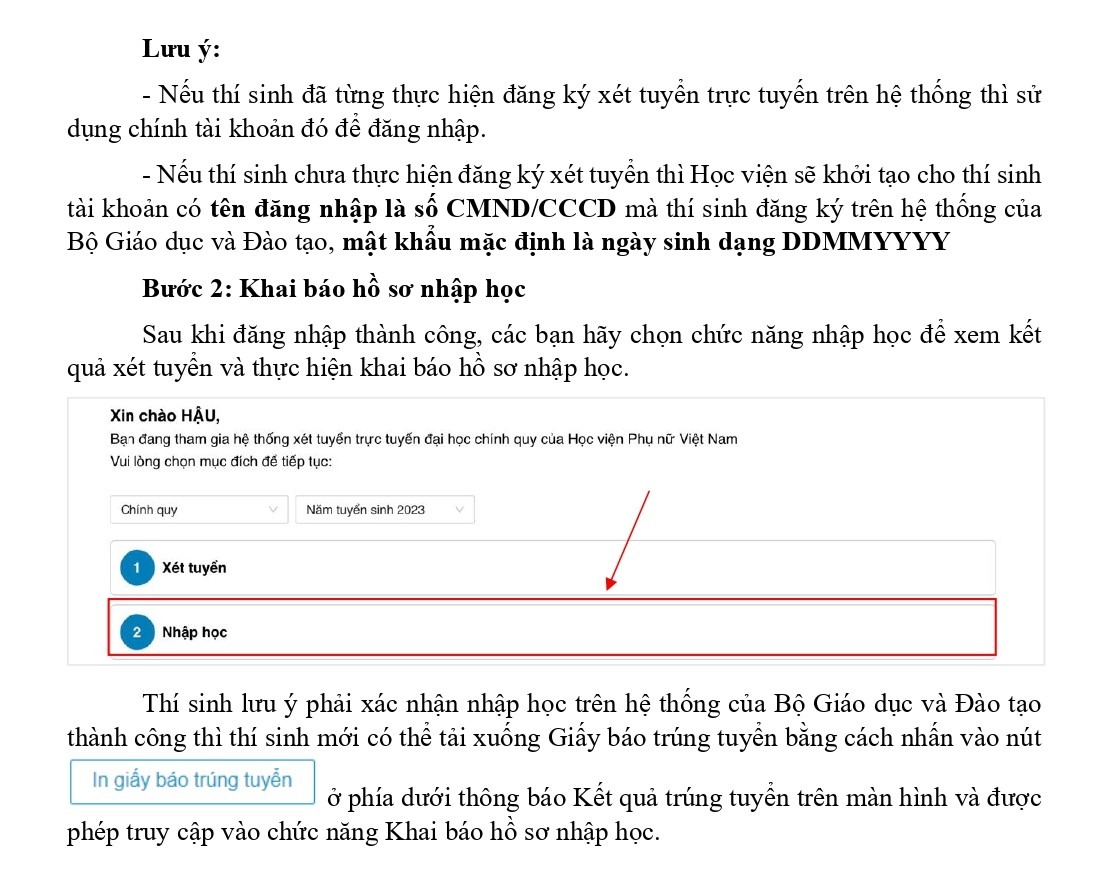 HƯỚNG DẪN CHI TIẾT CÁC BƯỚC NHẬP HỌC TRÊN HỆ THỐNG CỦA HỌC VIỆN