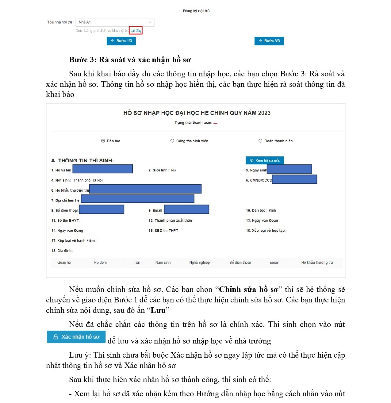 CÁCH THỨC NHẬP HỌC: Thí sinh bắt buộc thực hiện 03 Bước sau: