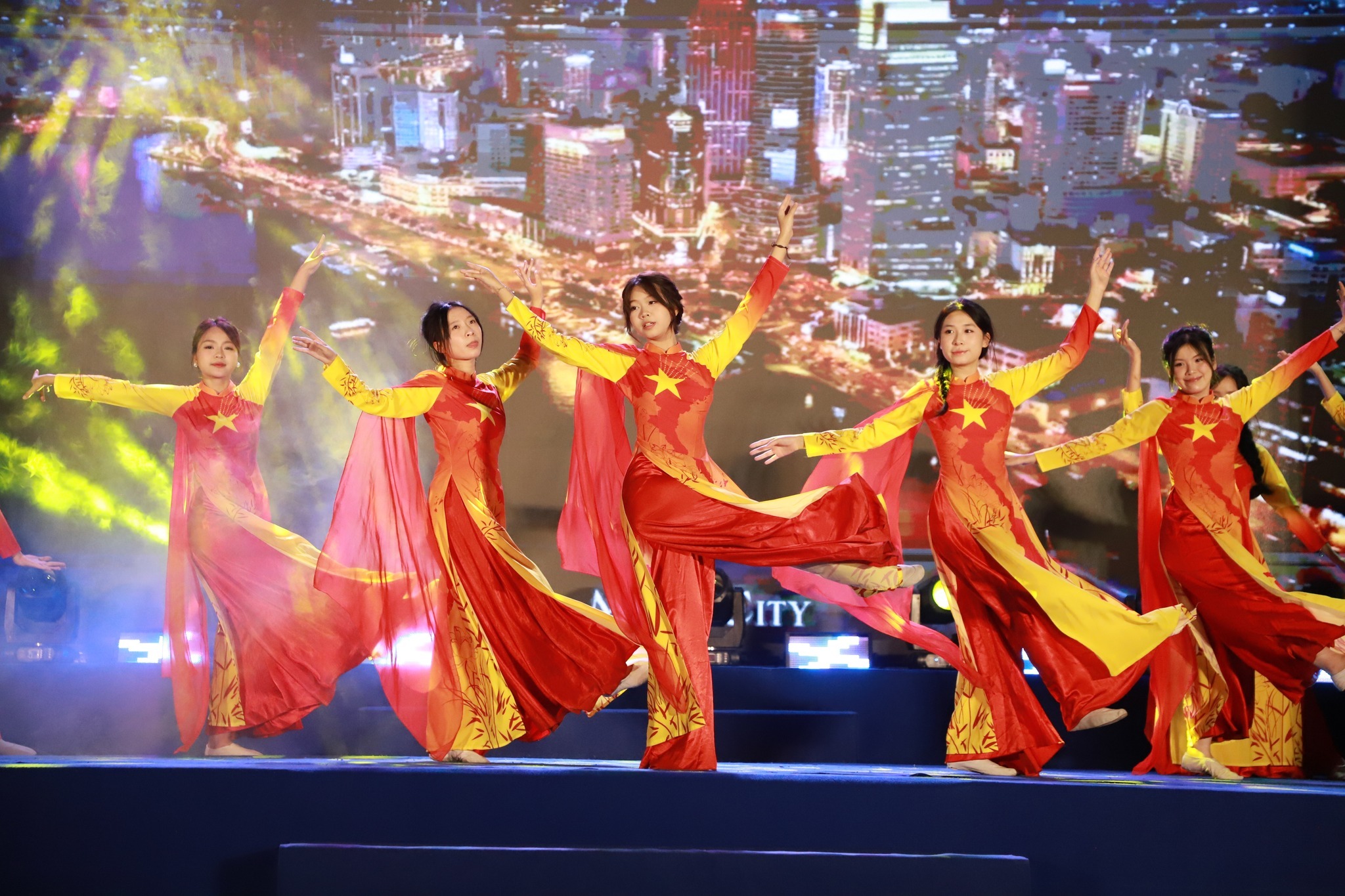 Ngay từ những phút mở màn, sân khấu đã bùng nổ với tiết mục “Tự hào Việt Nam và Người Việt” do CLB Blue Wings biểu diễn, khơi dậy niềm tự hào dân tộc và tinh thần tuổi trẻ. Tiếp nối là điệu múa “Made in Việt Nam” của Đội Văn nghệ tiên phong, tôn vinh trí tuệ, bản lĩnh và sức sáng tạo của thế hệ trẻ trong thời kỳ hội nhập.