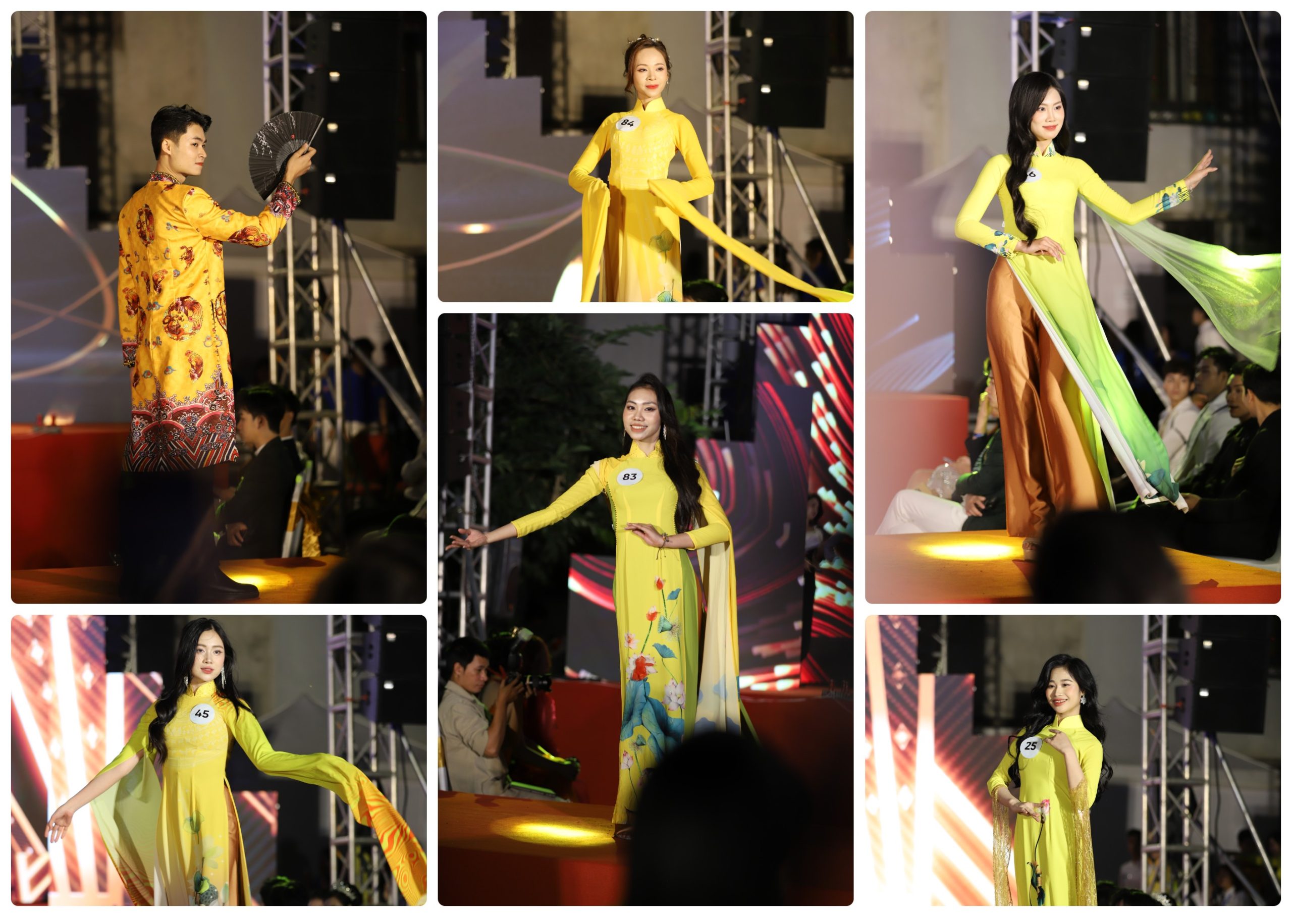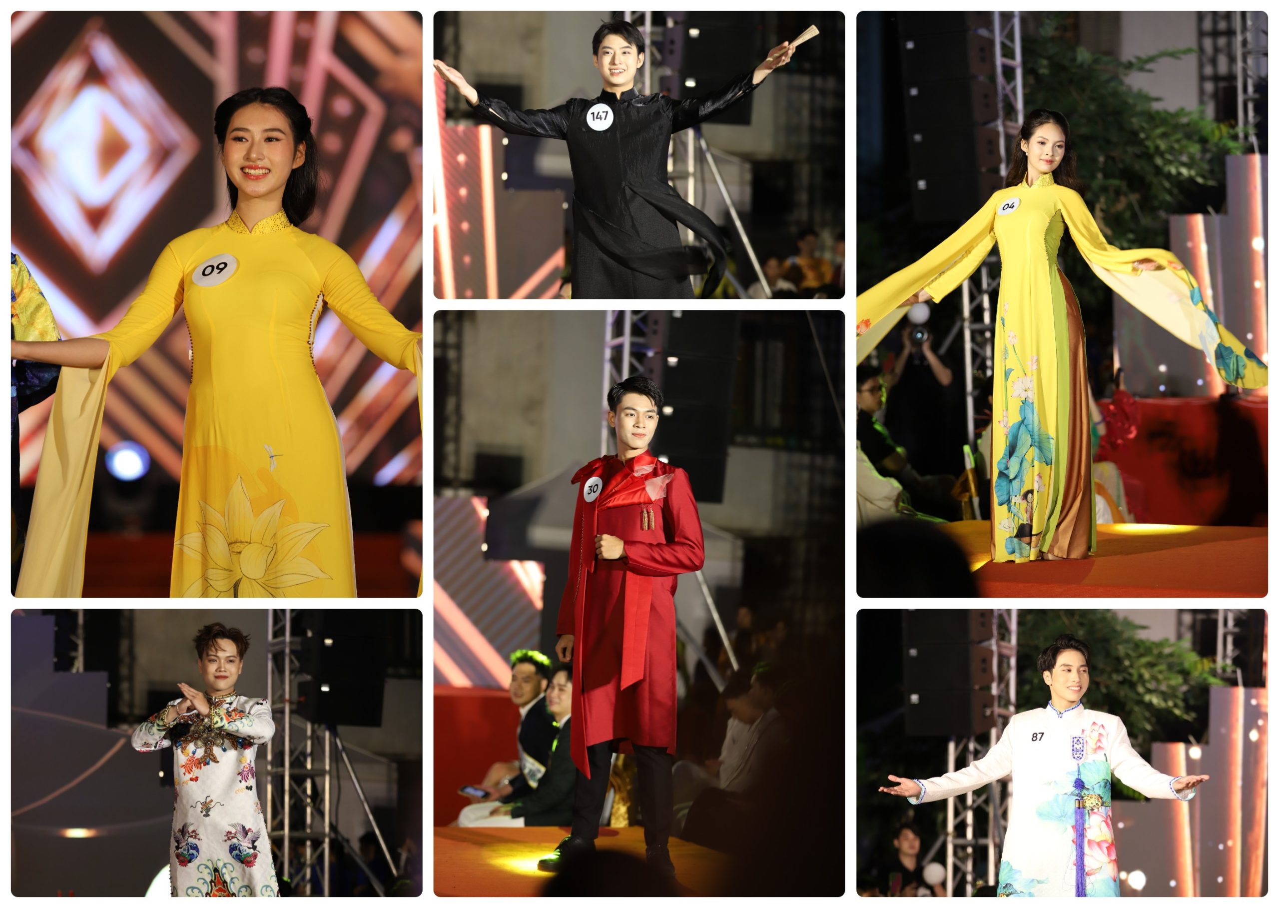 Bằng những bước catwalk uyển chuyển, các thí sinh đã khéo léo phô diễn vẻ đẹp của tà áo dài. Nữ sinh với dáng đi mềm mại, nhẹ nhàng đã làm nổi bật sự thướt tha của từng đường nét thiết kế, trong khi các nam sinh với phong thái điềm tĩnh, vững chãi lại mang đến sự nâng đỡ, tôn lên hình ảnh người bạn đồng hành.