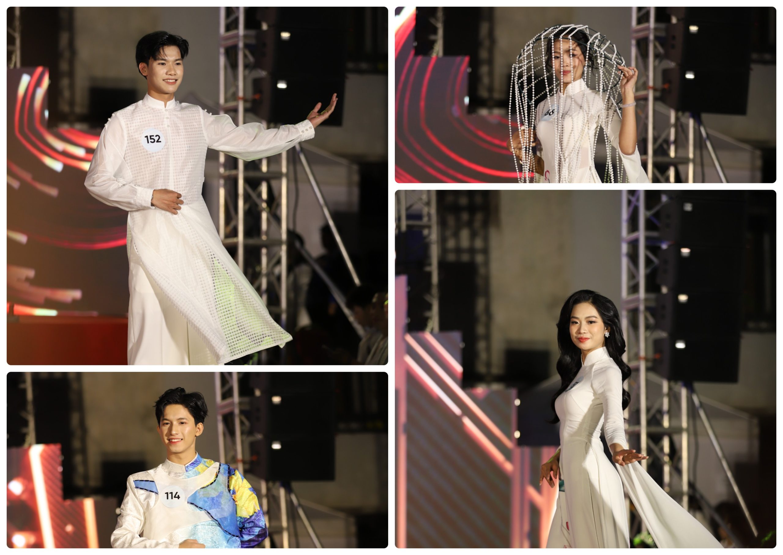 Áo dài – biểu tượng của văn hóa Việt Nam – là hiện thân của sự duyên dáng, thanh lịch và truyền thống dân tộc. Trong phần thi này, 11 cặp đôi thí sinh đã trình diễn những bộ áo dài mang đậm dấu ấn văn hóa từng vùng miền, từ những thiết kế giản dị với sắc trắng tinh khôi đến những bộ áo dài lộng lẫy, được trang trí bằng họa tiết hoa văn cầu kỳ, biểu trưng cho vẻ đẹp đa dạng của Việt Nam.