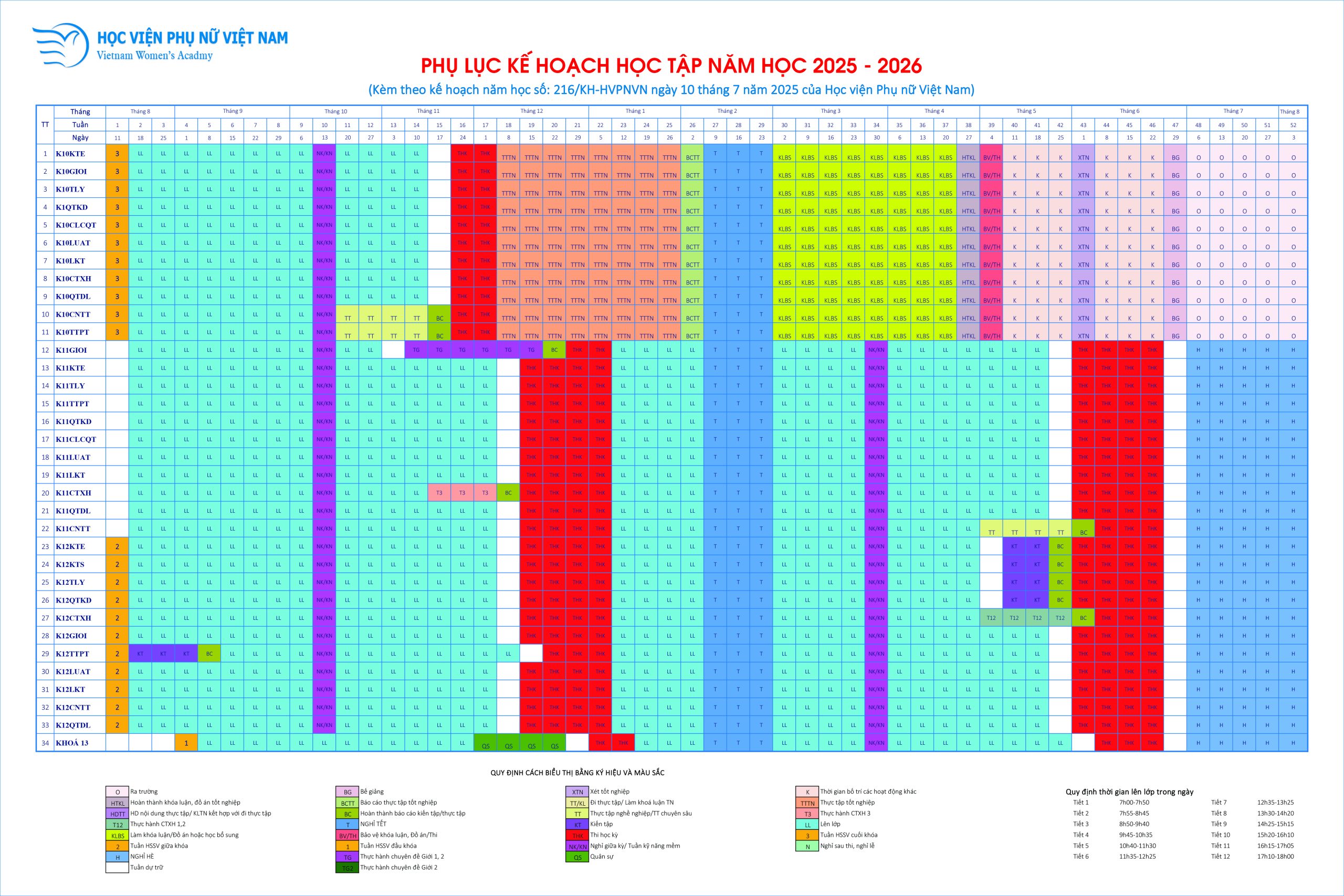 Học viện Phụ nữ Việt Nam công bố phụ lục kế hoạch năm học 2025 - 2026.