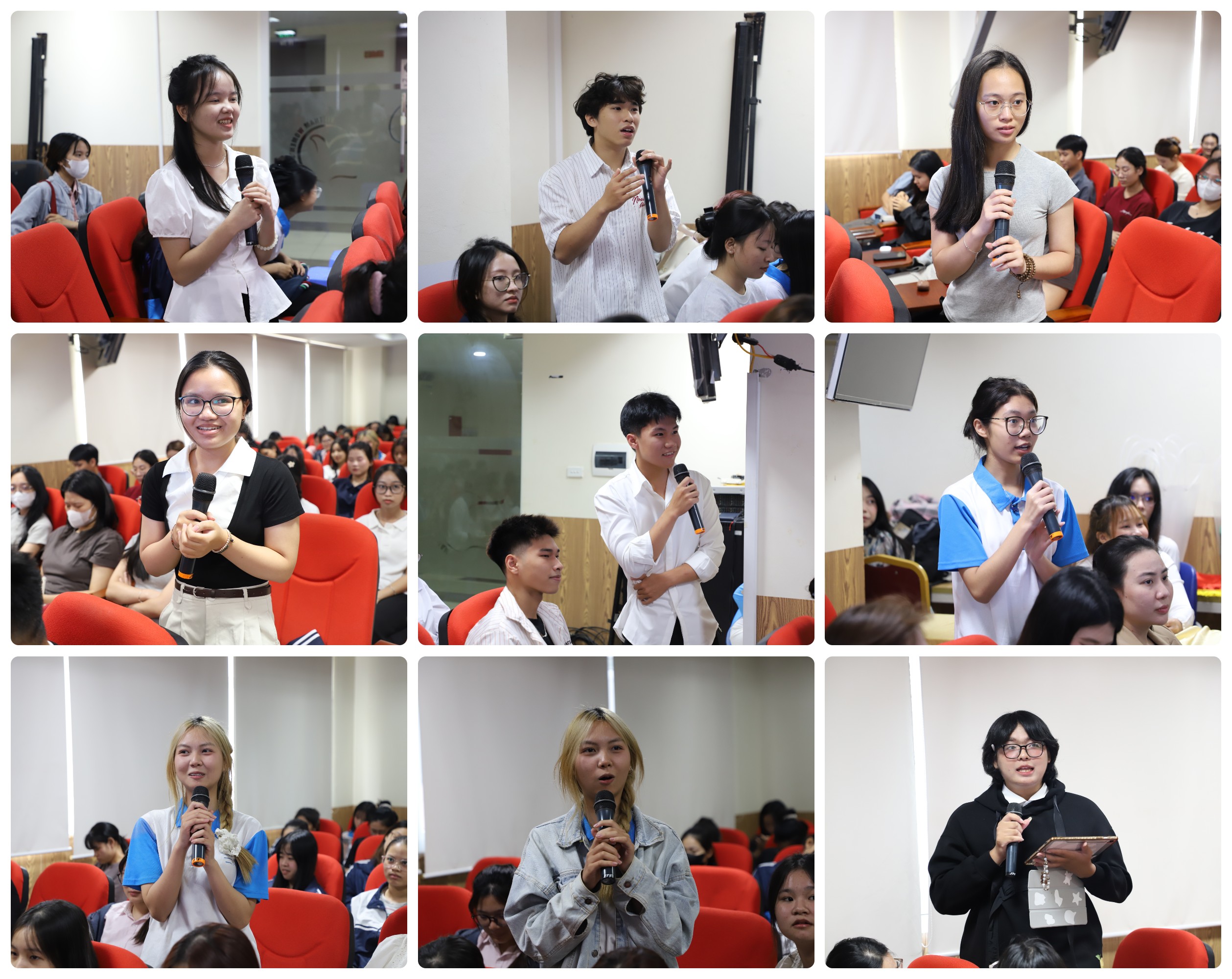 Phần giao lưu, hỏi đáp giữa sinh viên và diễn giả đã tạo nên không khí cởi mở, gần gũi. Nhiều câu hỏi xoay quanh việc làm thế nào để lựa chọn hướng đi phù hợp với năng lực cá nhân, cách chuẩn bị hành trang nghề nghiệp và xu hướng tuyển dụng trong thời gian tới. Các diễn giả đã nhiệt tình chia sẻ, đưa ra những lời khuyên thực tế, giúp sinh viên định hình rõ hơn con đường phát triển nghề nghiệp của mình.