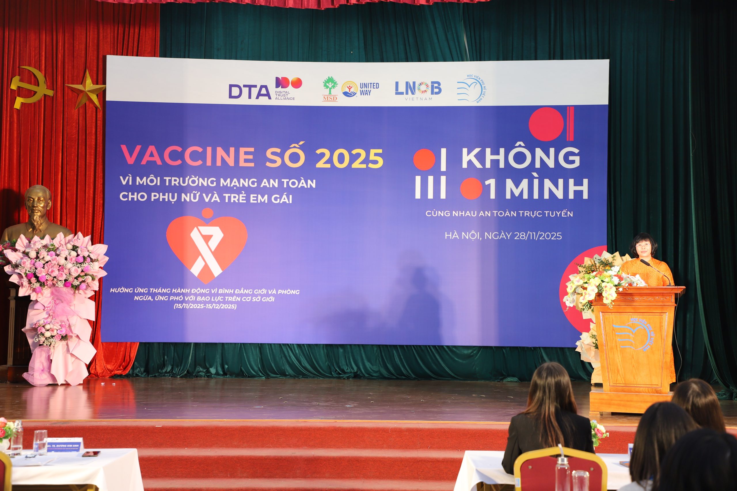 Sự kiện khép lại với thông điệp chung “Không một mình – cùng nhau an toàn trực tuyến”, nhấn mạnh rằng phụ nữ và trẻ em gái chỉ thực sự an toàn khi có sự đồng hành của gia đình, nhà trường, tổ chức xã hội và cộng đồng mạng. Những nội dung được chia sẻ không chỉ giúp người tham dự trang bị kiến thức và kỹ năng mà còn tạo ra nền tảng để thúc đẩy hợp tác giữa các bên trong xây dựng môi trường số lành mạnh, văn minh. Trong bối cảnh rủi ro mạng ngày càng gia tăng, “Không một mình – Vaccine Số” mang ý nghĩa như một lời nhắc nhở: an toàn số không phải là đặc quyền mà là quyền được bảo vệ của mọi công dân số – và cũng là trách nhiệm chung của toàn xã hội.