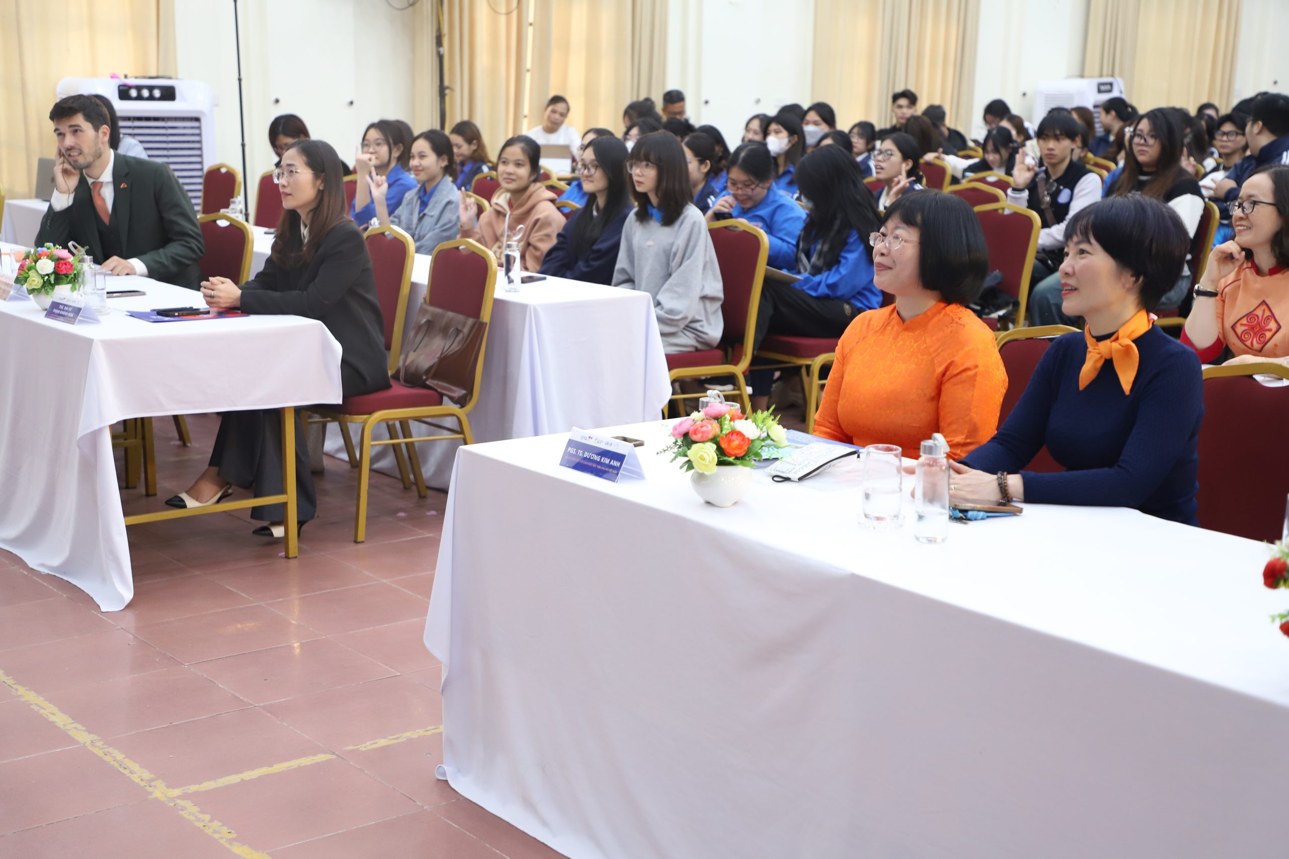 Trong phát biểu khai mạc, PGS.TS. Dương Kim Anh nhấn mạnh rằng kỹ năng số không còn là lợi thế bổ sung mà là năng lực sống còn của thế hệ trẻ, đặc biệt là sinh viên nữ. Bà cho biết Học viện đang đẩy mạnh triển khai mô hình “trường học an toàn số” nhằm nâng cao nhận thức và tạo nền tảng để sinh viên tự bảo vệ khi tham gia môi trường trực tuyến. Đây không chỉ là trách nhiệm của nhà trường mà còn là cách Học viện góp phần tạo ra thế hệ công dân số có hiểu biết, có khả năng phản biện và có bản lĩnh trước những thách thức của thời đại số.