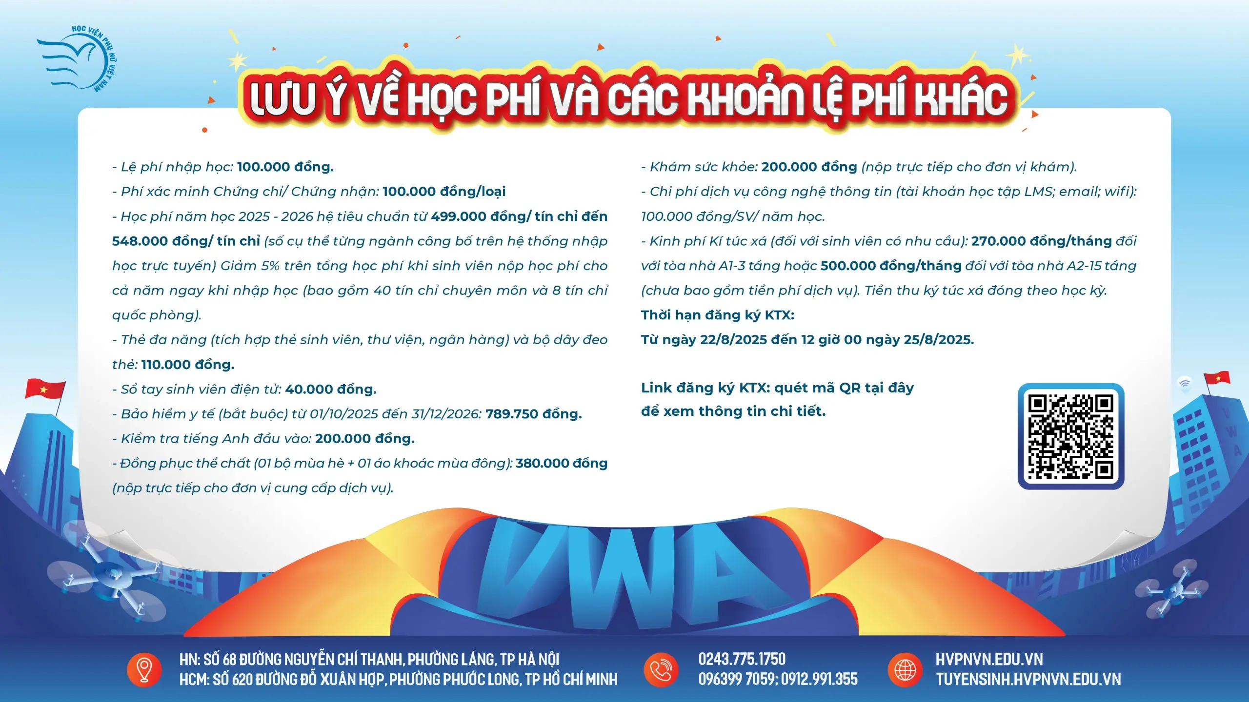 Nhằm hỗ trợ tân sinh viên Học viện Phụ nữ Việt Nam khóa 2025 thuận lợi trong quá trình nhập học, Học viện xây tổng hợp thông tin tập trung qua bài viết này. Toàn bộ quy trình, mốc thời gian, hồ sơ, hướng dẫn ký túc xá – nhà trọ, cũng như tài liệu, liên hệ và nhóm hỗ trợ đều được tổng hợp rõ ràng, khoa học giúp quá trình nhập học của tân sinh viên dễ dàng hơn.