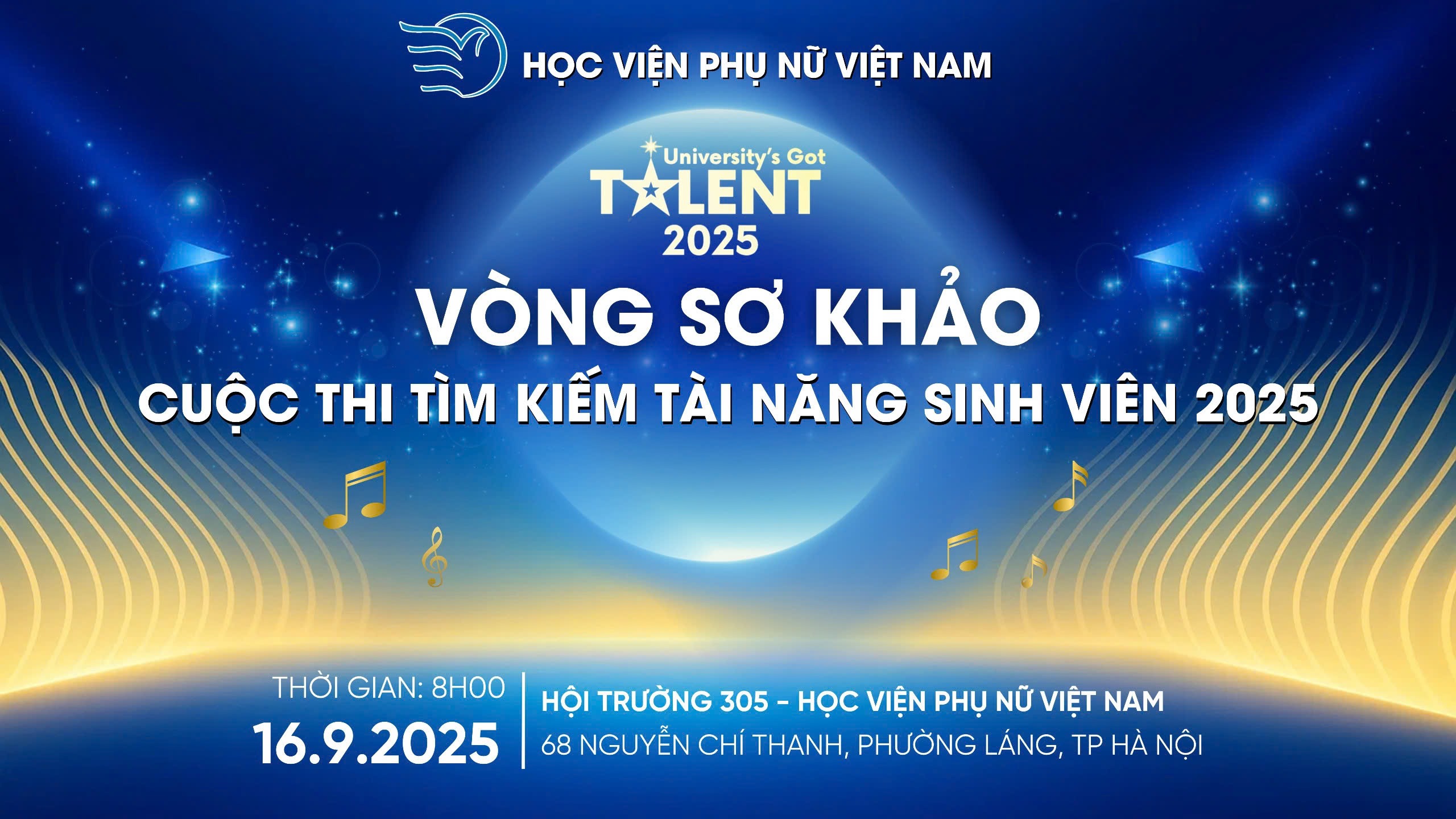 Sau thành công của nhiều sân chơi lớn dành cho sinh viên, học sinh, Học viện Phụ nữ Việt Nam tiếp tục khẳng định vai trò tiên phong khi tổ chức Cuộc thi “Tìm kiếm tài năng Sinh viên – University’s Got Talent 2025”. Ngày mai, 16/9/2025, vòng Sơ khảo của cuộc thi sẽ diễn ra trực tiếp tại Hội trường 305, Nhà A2 và kết hợp hình thức trực tuyến, với sự tham gia của 157 thí sinh đến từ 68 trường trên cả nước. Những con số ấn tượng cùng sự đa dạng về loại hình biểu diễn hứa hẹn mang đến một mùa giải bùng nổ, giàu cảm hứng và lan tỏa năng lượng tích cực của tuổi trẻ.