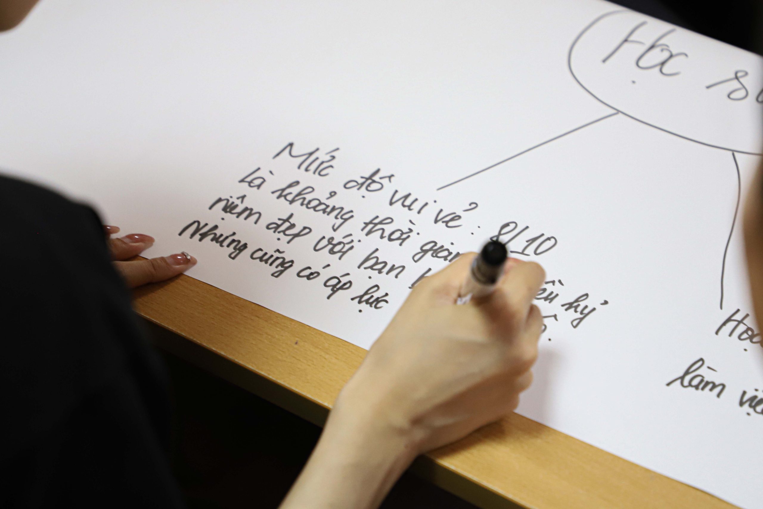 Nhiều bạn chia sẻ rằng trước đây thường dễ bị căng thẳng, lo lắng khi gặp áp lực học tập hoặc các vấn đề cá nhân. Tuy nhiên, sau khi được hướng dẫn các phương pháp nhận diện và điều chỉnh cảm xúc, các bạn đã biết cách giữ bình tĩnh, suy nghĩ tích cực và tìm hướng giải quyết phù hợp.