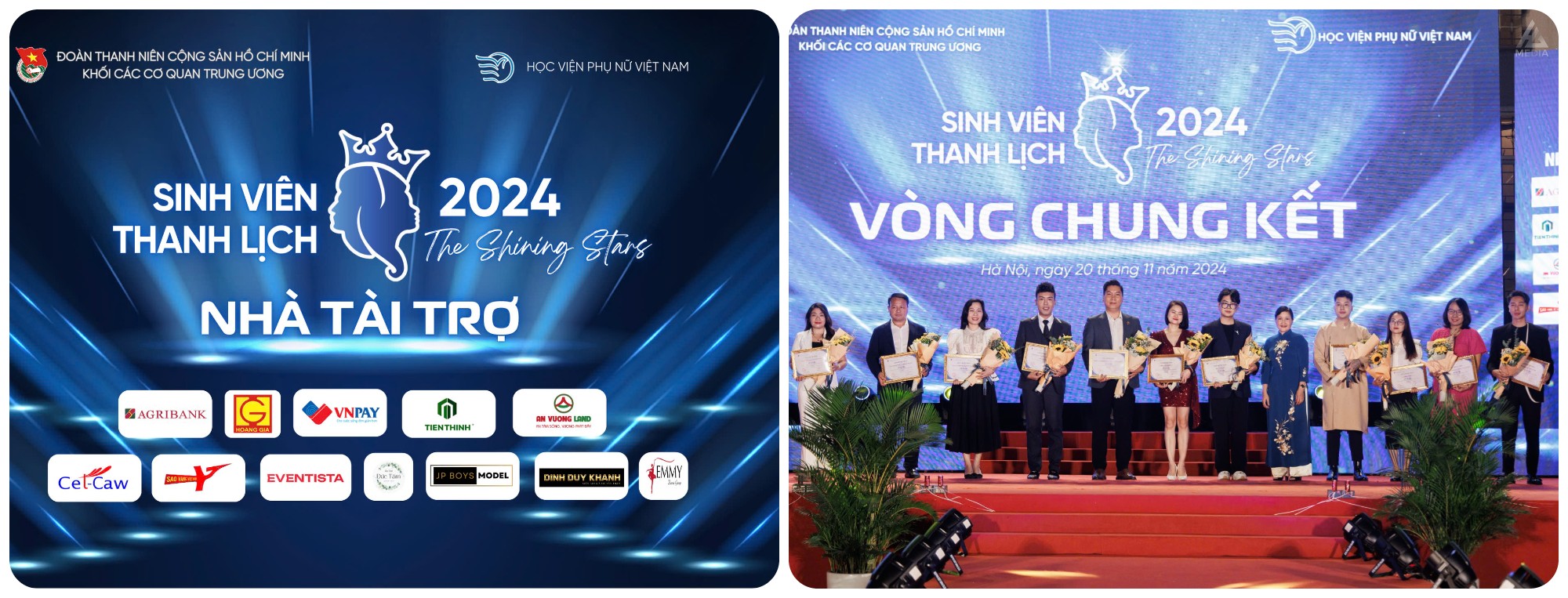 Cuộc thi Sinh viên Thanh lịch năm 2024 do Học viện Phụ nữ Việt Nam phối hợp cùng Đoàn Thanh niên khối các cơ quan Trung ương tổ chức đã chính thức khép lại, để lại dấu ấn đậm nét và dư âm sâu sắc trong lòng tất cả những người tham gia. Đây không chỉ là sân chơi để tôn vinh vẻ đẹp, tài năng và trí tuệ của sinh viên, mà còn là nơi hội tụ, lan tỏa những giá trị tích cực, góp phần xây dựng cộng đồng sinh viên văn minh, chuyên nghiệp và đầy cảm hứng. Thành công của chương trình không chỉ đến từ sự nỗ lực của Ban Tổ chức và các thí sinh, mà còn nhờ vào sự hỗ trợ quý báu từ các nhà tài trợ.