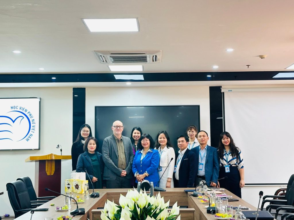 Về phía Học viện Phụ nữ Việt Nam có PGS. TS Dương Kim Anh, Phó Giám đốc Học viện Phụ nữ Việt Nam; TS. Hoàng Hương Thuỷ, Trưởng Phòng Hợp tác Quốc tế & Quản lý Khoa học, lãnh đạo Khoa Quản trị Kinh doanh, Khoa Giới & Phát triển, Khoa Luật, Viện Công nghệ Thông tin.