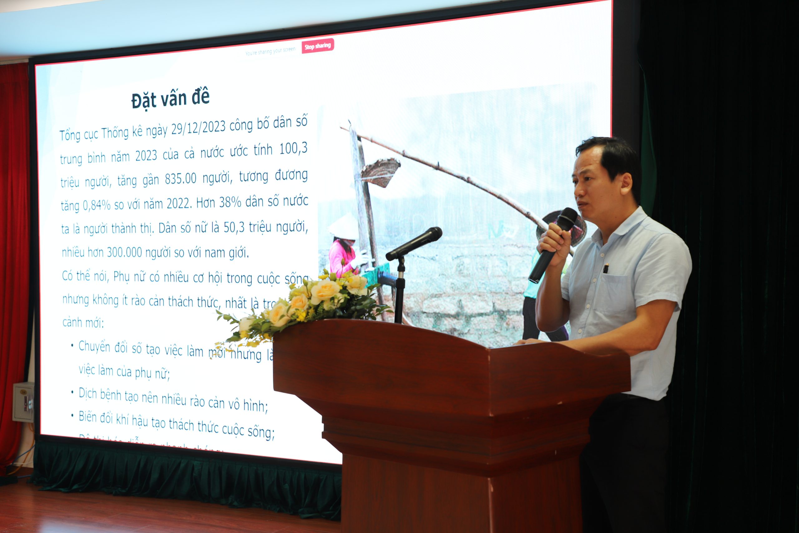 PGS. TS. Nguyễn Đức Chiện – Tổng biên tập Tạp chí Xã hội học Việt Nam – Phó viện trưởng Viện Xã hội học, Viện Hàn lâm Khoa học Xã hội Việt Nam trình bày chuyên đề: Tình hình phụ nữ Việt Nam hiện nay và một số vấn đề đặt ra đối với công tác bình đẳng giới trong bối cảnh mới