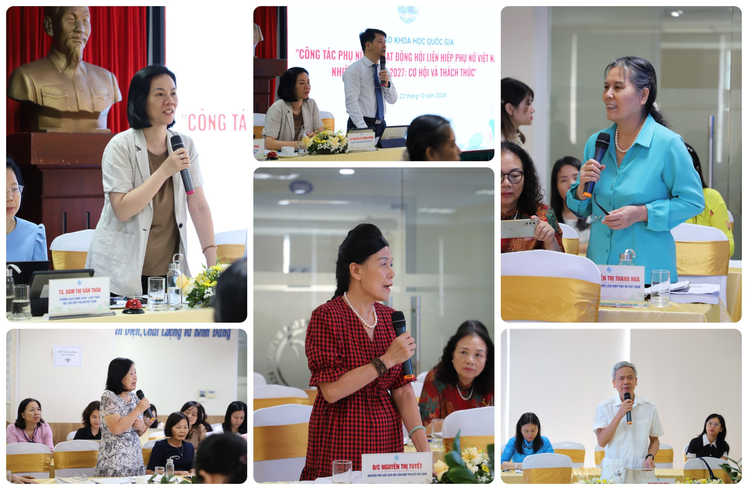 Thông qua việc theo dõi 7 tham luận của các diễn giả có kinh nghiệm nghiên cứu về công tác phụ nữ, bình đẳng giới và sự trao đổi sâu sắc, tận tâm của đa số đại biểu tham dự, hội thảo đã đưa ra những giải pháp toàn diện, từ việc nâng cao năng lực cán bộ Hội, ứng dụng công nghệ số, đến phát triển sinh kế và tăng cường vai trò của phụ nữ trong xã hội. Hội thảo đã phác họa hình ảnh của phụ nữ Việt Nam đón nhận nhiều cơ hội mới trong bối cảnh xã hội hiện nay với sự phát triển nhanh chóng của công nghệ và hội nhập quốc tế. Phụ nữ có thể tham gia mạnh mẽ hơn vào các lĩnh vực kinh tế, chính trị và xã hội, khẳng định vai trò và vị thế của mình trong thời kỳ đổi mới. Các đại biểu nhấn mạnh rằng, để tận dụng tốt các cơ hội này, cần nâng cao nhận thức xã hội về bình đẳng giới, đồng thời tạo điều kiện thuận lợi cho phụ nữ phát huy tiềm năng của mình.