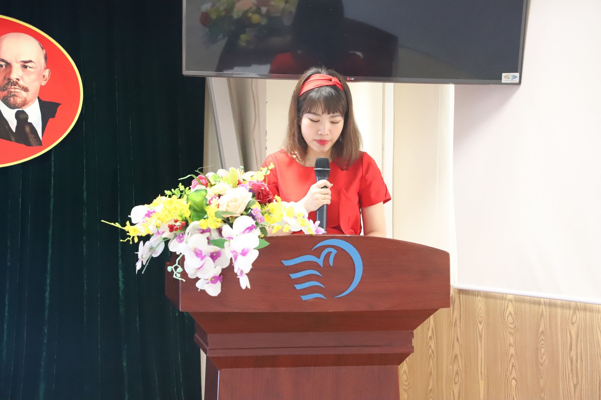 Sinh viên Đỗ Thị Hồng Tươi – K9 CTXH, người đạt giải Nhất sinh viên NCKH năm học 2023 – 2024 đã phát biểu cảm ơn sự tạo điều kiện