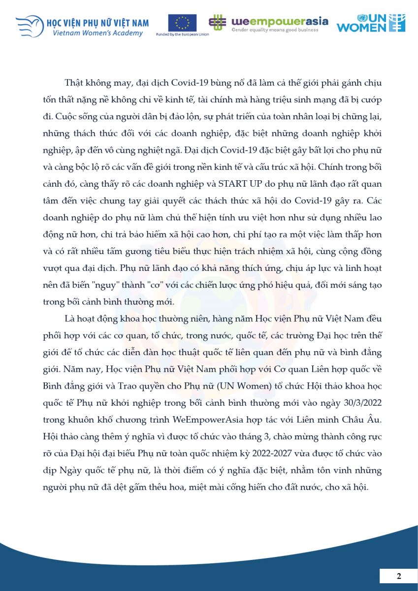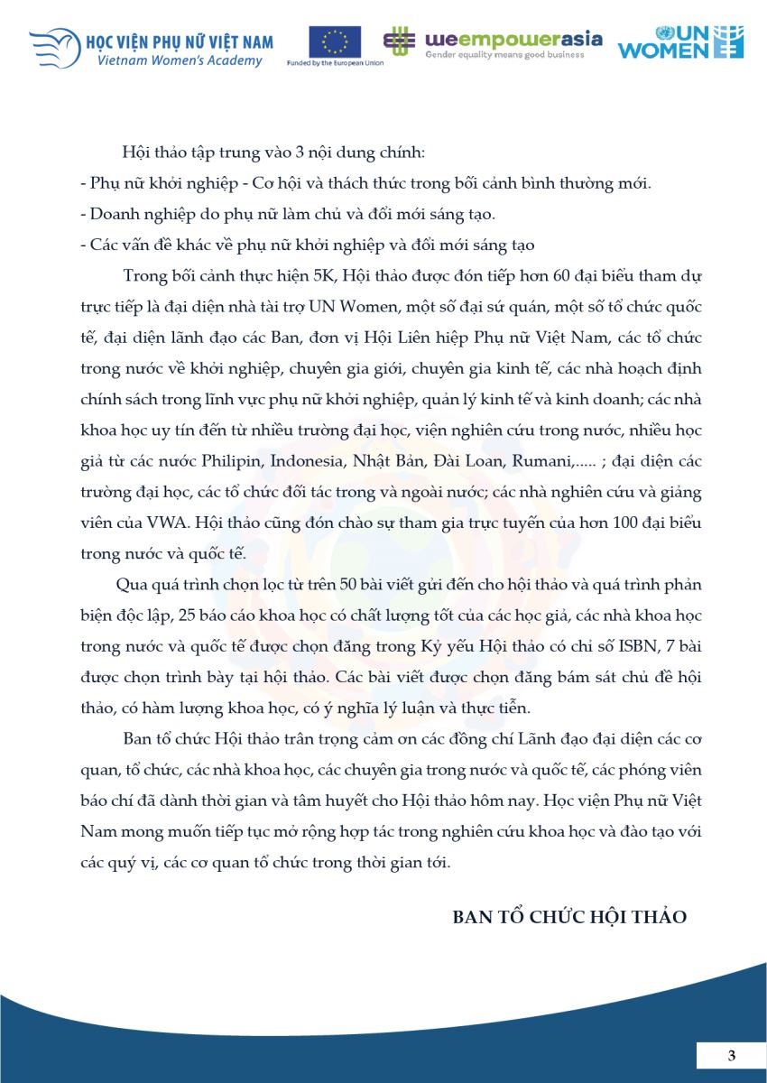 Thông cáo báo chí Hội thảo KHQT: “Phụ nữ sáng tạo, khởi nghiệp trong bối cảnh bình thường mới”