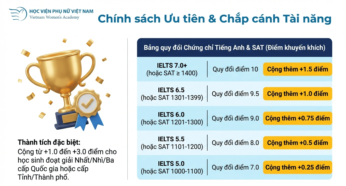 Tại Học viện Phụ nữ Việt Nam, chính sách điểm cộng năm 2026 được công bố minh bạch: