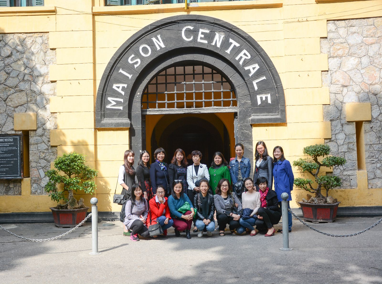 Đoàn chụp ảnh lưu niệm trước cổng Di tích Nhà tù Hỏa Lò