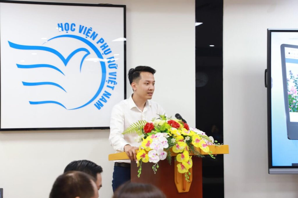 Phát biểu tại sự kiện, PGS.TS. Trần Quang Tiến khẳng định trong thời đại thế giới phẳng hiện nay, mọi ứng dụng đều được thực hiện trên nền tảng internet. Việc có quá nhiều sản phẩm công nghệ thông tin được phát triển trên nhiều nền tảng khác nhau đã dẫn đến khó kiểm soát, khó quản lý, gây bất tiện cho người sử dụng. Giải pháp xây dựng Cổng thông tin điện tử được đưa ra để giải quyết các khó khăn trong việc trên. Giải pháp này cung cấp cho Học viện một nền tảng thống nhất để phát triển, tích hợp và quản lý các ứng dụng công nghệ thông tin hiệu quả hơn; Đồng thời mang lại nhiều thuận lợi cho người sử dụng như tạo ra môi trường làm việc, giao lưu, chia sẻ tập trung và duy nhất; Điều này đồng nghĩa với việc người dùng sẽ không phải ghi nhớ nhiều địa chỉ ứng dụng và chỉ cần một tài khoản duy nhất, qua đó giảm thiểu chi phí vận hành cho Học viện, đơn giản hóa việc khai thác của người dùng. Học viện Phụ nữ Việt Nam tự hào là đơn vị tiên phong trong việc đồng bộ hóa gần 10 lĩnh vực khác nhau về hoạt động quản trị vận hành và chuyên môn trên cổng thông tin, nền tảng số của Học viện. Việc đồng bộ này mang lại nhiều lợi ích cho cán bộ giảng viên và sinh viên đồng thời phục vụ tốt nhất cho nhu cầu tìm hiểu của xã hội. Giám đốc cũng gửi lời cảm ơn đơn vị đối tác là Công ty cổ phần công nghệ AISOFT đã nhiệt tình phối hợp, hỗ trợ trong quá trình trước, trong và sau khi hoàn thiện cổng thông tin.