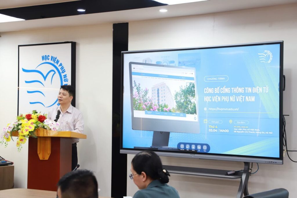 Phát biểu tại sự kiện, PGS.TS. Trần Quang Tiến khẳng định trong thời đại thế giới phẳng hiện nay, mọi ứng dụng đều được thực hiện trên nền tảng internet. Việc có quá nhiều sản phẩm công nghệ thông tin được phát triển trên nhiều nền tảng khác nhau đã dẫn đến khó kiểm soát, khó quản lý, gây bất tiện cho người sử dụng. Giải pháp xây dựng Cổng thông tin điện tử được đưa ra để giải quyết các khó khăn trong việc trên. Giải pháp này cung cấp cho Học viện một nền tảng thống nhất để phát triển, tích hợp và quản lý các ứng dụng công nghệ thông tin hiệu quả hơn; Đồng thời mang lại nhiều thuận lợi cho người sử dụng như tạo ra môi trường làm việc, giao lưu, chia sẻ tập trung và duy nhất; Điều này đồng nghĩa với việc người dùng sẽ không phải ghi nhớ nhiều địa chỉ ứng dụng và chỉ cần một tài khoản duy nhất, qua đó giảm thiểu chi phí vận hành cho Học viện, đơn giản hóa việc khai thác của người dùng. Học viện Phụ nữ Việt Nam tự hào là đơn vị tiên phong trong việc đồng bộ hóa gần 10 lĩnh vực khác nhau về hoạt động quản trị vận hành và chuyên môn trên cổng thông tin, nền tảng số của Học viện. Việc đồng bộ này mang lại nhiều lợi ích cho cán bộ giảng viên và sinh viên đồng thời phục vụ tốt nhất cho nhu cầu tìm hiểu của xã hội. Giám đốc cũng gửi lời cảm ơn đơn vị đối tác là Công ty cổ phần công nghệ AISOFT đã nhiệt tình phối hợp, hỗ trợ trong quá trình trước, trong và sau khi hoàn thiện cổng thông tin.