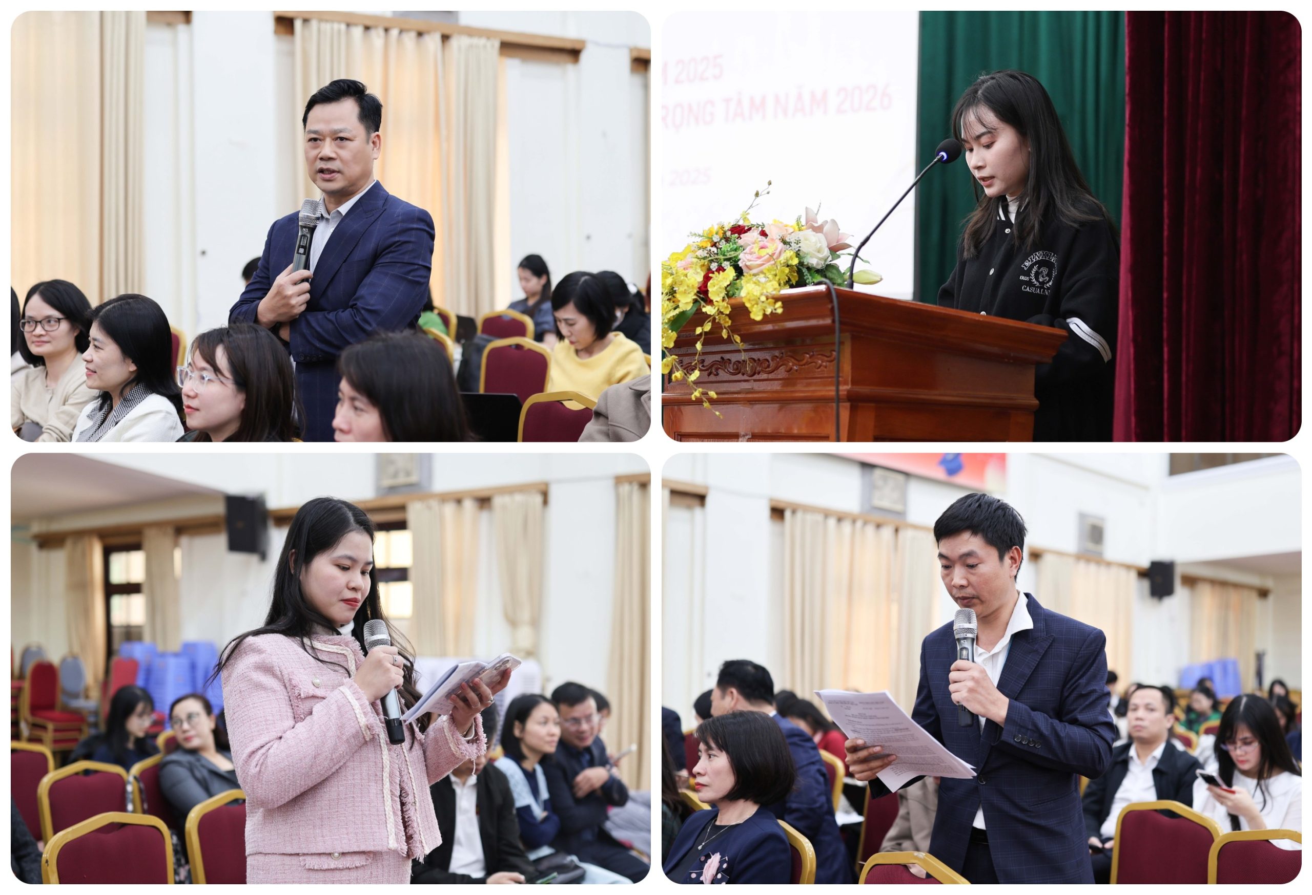 Bước sang năm 2026, PGS.TS. Trần Quang Tiến đề nghị toàn Đảng bộ tiếp tục tập trung vào một số nhiệm vụ trọng tâm. Trước hết, cần giữ vững và nâng cao chất lượng công tác chính trị, tư tưởng, tăng cường kỷ cương, trách nhiệm nêu gương của cán bộ, đảng viên, nhất là người đứng đầu. Đồng chí lưu ý việc gắn chặt công tác xây dựng Đảng với thực hiện nhiệm vụ chuyên môn, coi đây là yêu cầu xuyên suốt trong mọi hoạt động của Học viện. Bên cạnh đó, Bí thư Đảng ủy Học viện yêu cầu các chi bộ tiếp tục đổi mới nội dung, phương thức sinh hoạt, chú trọng chiều sâu, tính thiết thực; quan tâm công tác phát triển đảng viên, đặc biệt là đảng viên trẻ, đảng viên sinh viên, nhằm bảo đảm sự kế thừa và phát triển lâu dài của Đảng bộ. Trong lĩnh vực đào tạo và nghiên cứu khoa học, cần phát huy hơn nữa vai trò lãnh đạo của tổ chức Đảng trong việc nâng cao chất lượng, hiệu quả, đáp ứng yêu cầu đổi mới giáo dục đại học và nhiệm vụ chính trị được giao. PGS.TS. Trần Quang Tiến bày tỏ tin tưởng rằng, với nền tảng đã được gây dựng trong năm 2025, cùng tinh thần trách nhiệm và sự đồng lòng của toàn thể cán bộ, đảng viên, Đảng bộ Học viện Phụ nữ Việt Nam sẽ tiếp tục hoàn thành tốt các nhiệm vụ trong năm 2026, góp phần đưa Học viện phát triển ổn định, bền vững trong giai đoạn tiếp theo.