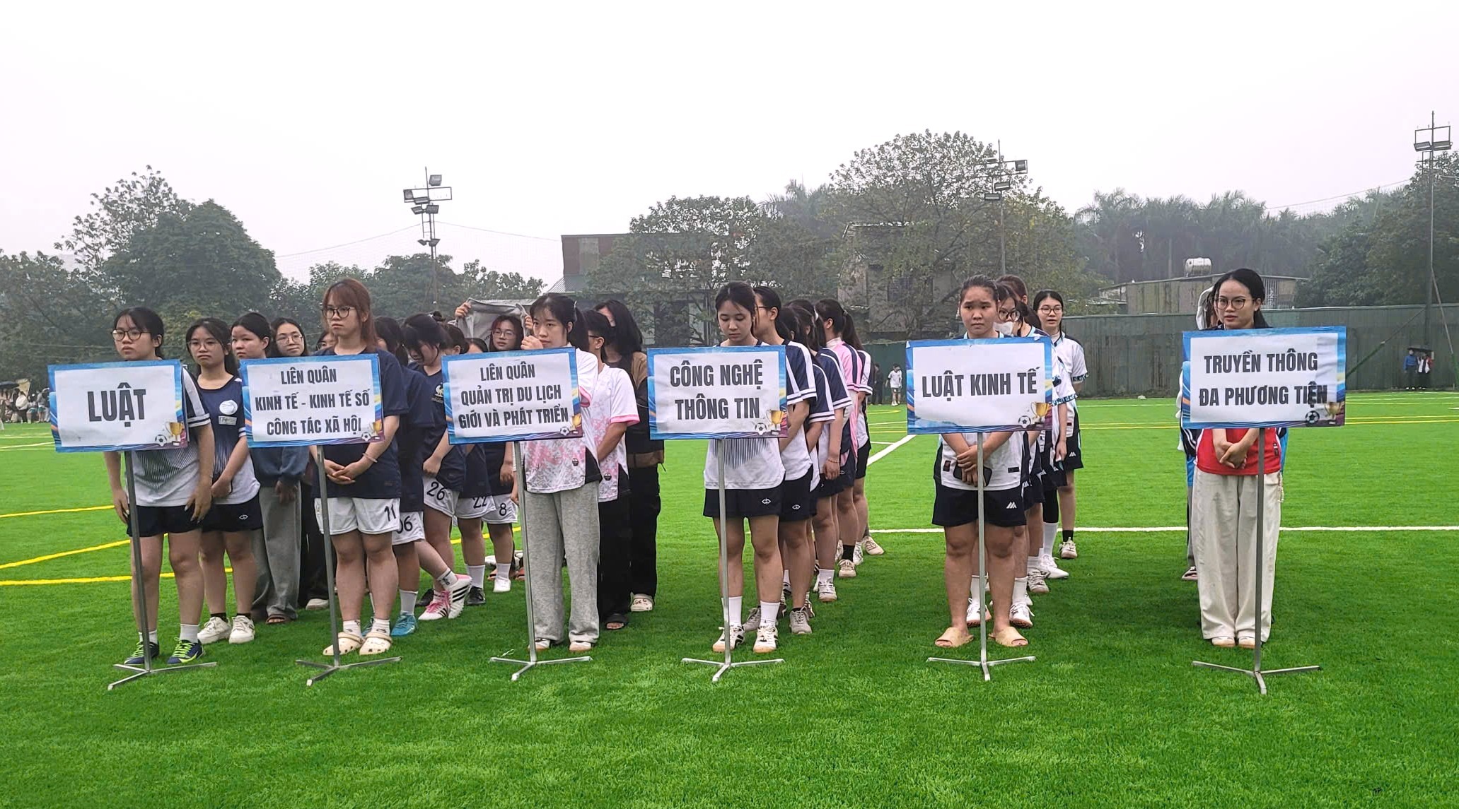 Chương trình khai mạc Giải bóng đá nữ sinh viên Học viện Phụ nữ Việt Nam năm 2026 có sự hiện diện và cổ vũ trực tiếp của PGS.TS Trần Quang Tiến – Bí thư Đảng ủy, Giám đốc Học viện, cùng lãnh đạo các khoa, Phòng Công tác sinh viên, Đoàn Thanh niên Học viện. Sự có mặt đông đủ của lãnh đạo Học viện không chỉ thể hiện sự quan tâm sâu sắc đối với đời sống tinh thần, thể chất của sinh viên mà còn là nguồn động viên to lớn, tiếp thêm động lực để các đội bóng nữ thi đấu tự tin, cống hiến và bùng nổ trên sân cỏ.