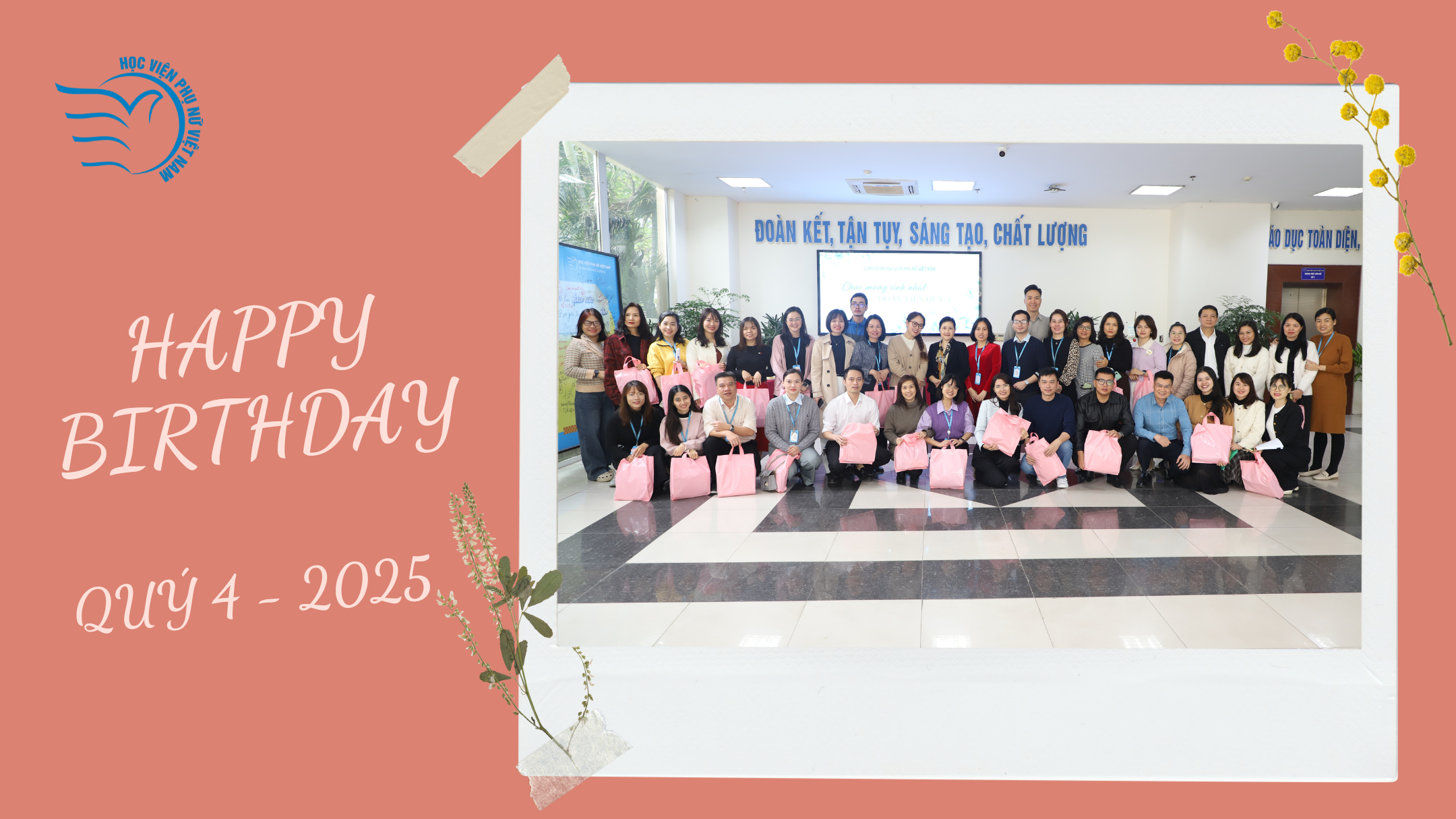 Chương trình chúc mừng sinh nhật các cán bộ, viên chức, người lao động có ngày sinh trong Quý IV đã khép lại trong không khí ấm áp, vui tươi và đầy cảm xúc. Hoạt động không chỉ góp phần chăm lo đời sống tinh thần cho đội ngũ cán bộ mà còn thể hiện rõ nét văn hóa nhân văn, lấy con người làm trung tâm trong định hướng phát triển của Học viện Phụ nữ Việt Nam. Thông qua những hoạt động ý nghĩa này, Học viện Phụ nữ Việt Nam tiếp tục khẳng định sự quan tâm toàn diện tới đội ngũ cán bộ, viên chức, người lao động – nguồn lực quan trọng, nền tảng cho sự phát triển bền vững và lâu dài của Học viện trong giai đoạn mới.