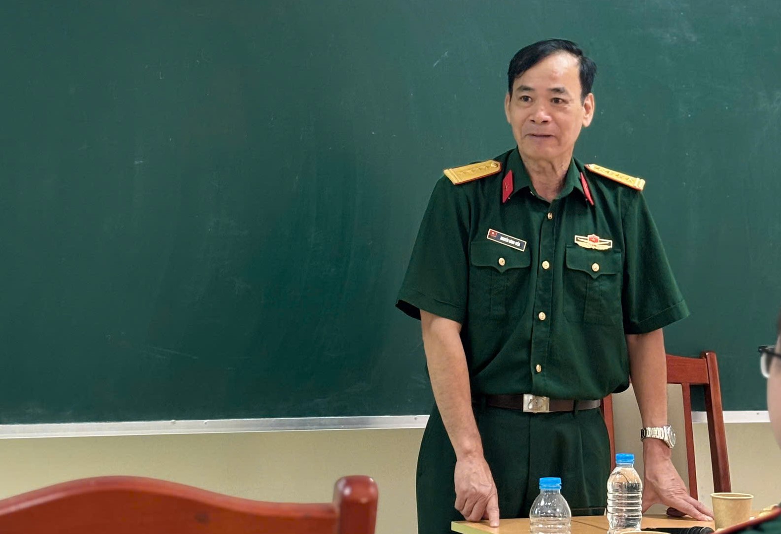 Phần huấn luyện chính trị do Đại tá, Thạc sĩ, Giảng viên cao cấp Nguyễn Đăng Tiến – Giảng viên Học viện Chính trị Bộ Quốc phòng thực hiện. Các chuyên đề được truyền đạt trong chương trình tập trung vào tình hình chính trị, quân sự trong nước và thế giới hiện nay, qua đó giúp các chiến sĩ tự vệ nhận diện rõ hơn những thách thức an ninh phi truyền thống, âm mưu “diễn biến hòa bình”, chiến lược “bất bạo động” và các yếu tố tác động đến an ninh quốc gia trong bối cảnh hội nhập sâu rộng.