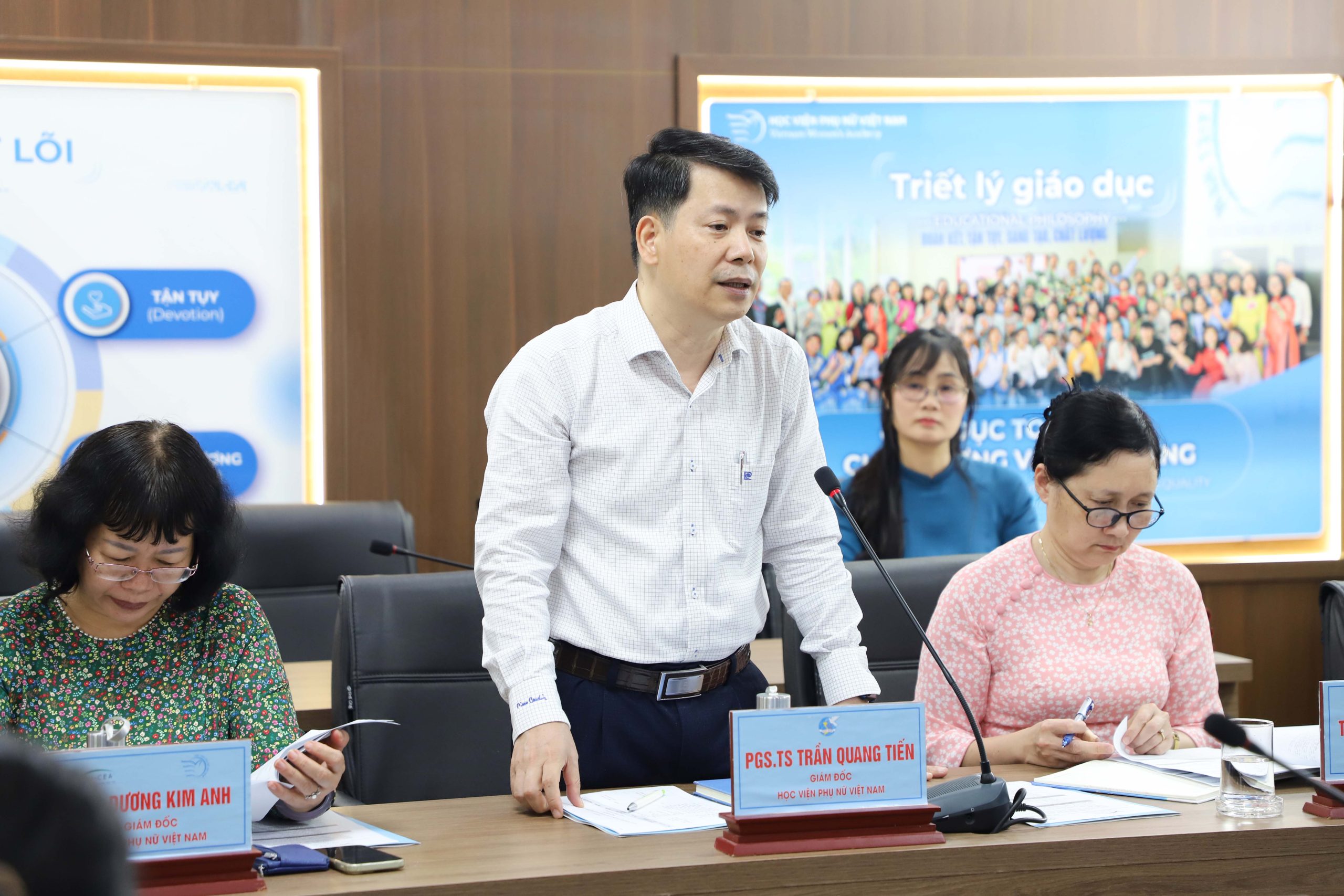 Phát biểu tại buổi làm việc, PGS.TS. Trần Quang Tiến – Giám đốc Học viện Phụ nữ Việt Nam nhấn mạnh tầm quan trọng của hoạt động kiểm định và đánh giá chất lượng giáo dục đối với sự phát triển bền vững của các cơ sở đào tạo đại học: “Đánh giá chất lượng cơ sở giáo dục đại học không chỉ là yêu cầu bắt buộc trong hệ thống đảm bảo chất lượng quốc gia mà còn là cơ hội để mỗi cơ sở nhìn lại quá trình phát triển, tự soi chiếu, tự hoàn thiện nhằm nâng cao chất lượng đào tạo, nghiên cứu và quản trị đại học. Với Học viện Phụ nữ Việt Nam, đây là dịp để chúng tôi khẳng định uy tín, thương hiệu và vị thế của một cơ sở giáo dục đặc thù – nơi đào tạo, bồi dưỡng nguồn nhân lực chất lượng cao, đóng góp vào tiến trình bình đẳng giới và phát triển xã hội bền vững.”