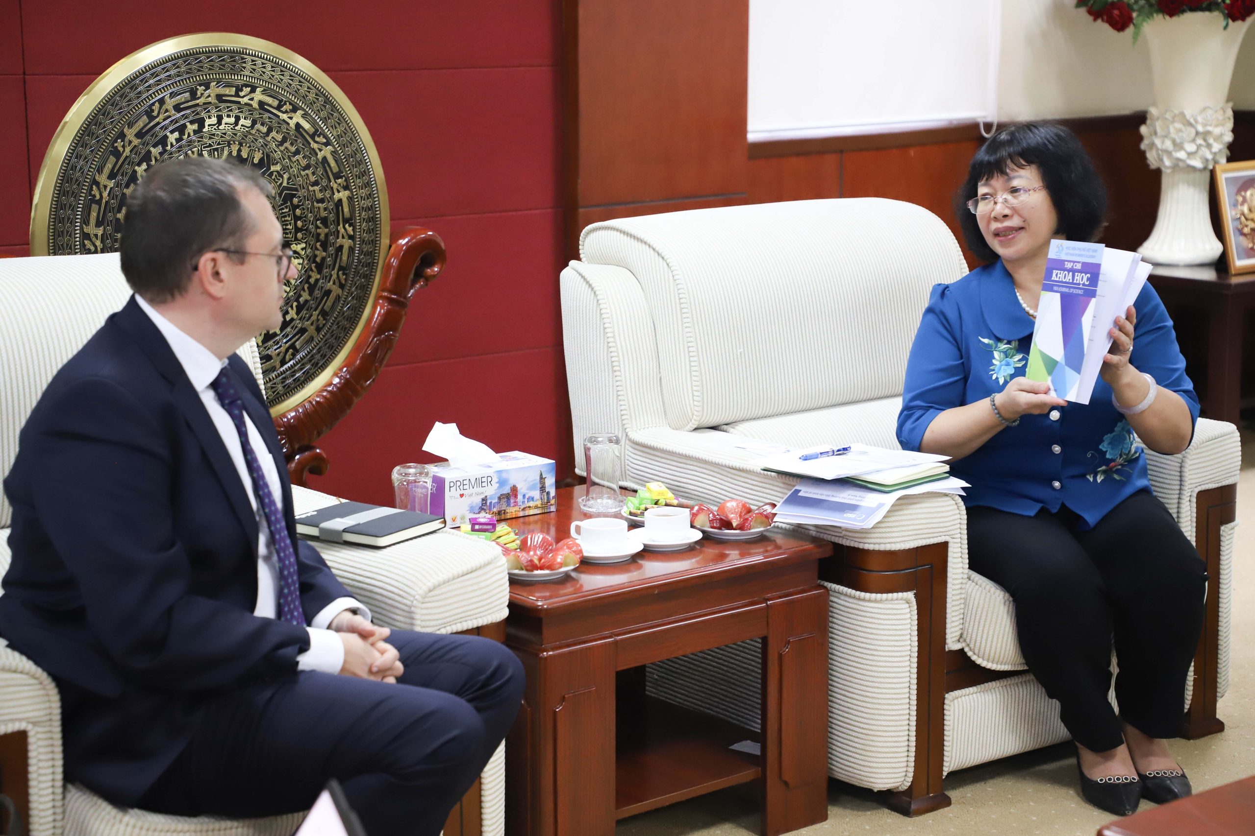 Hai bên cùng trao đổi về những định hướng hợp tác tiềm năng trong tương lai, đặc biệt là trong việc gắn kết nghiên cứu khoa học, đào tạo và truyền thông nâng cao nhận thức về kinh tế xanh, định giá các-bon và chuyển đổi năng lượng công bằng.