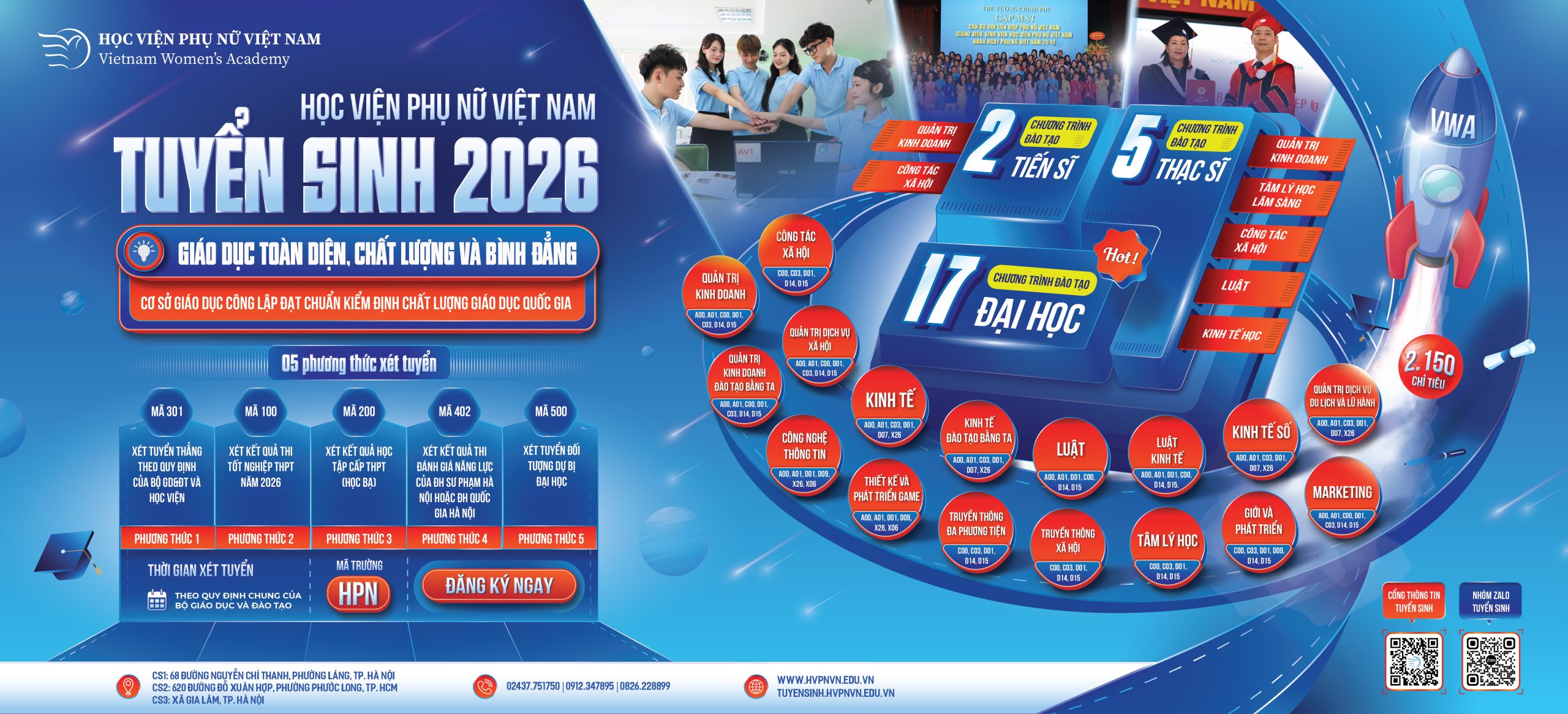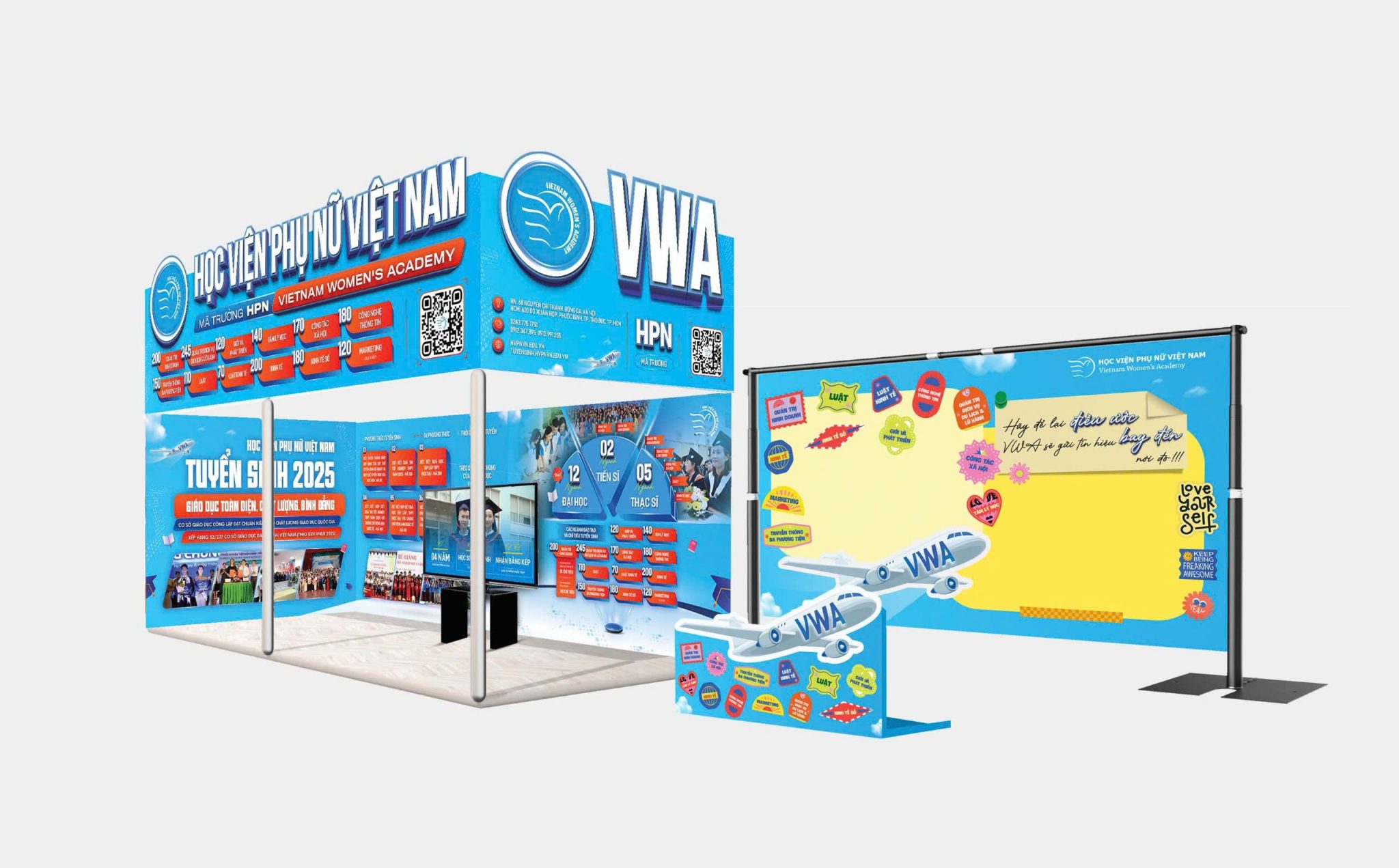 Học viện Phụ nữ Việt Nam trân trọng chào đón các thí sinh đến tham quan, tìm hiểu và trải nghiệm tại gian tư vấn của Học viện. Hãy đến để lắng nghe, để đặt câu hỏi, để khám phá những khả năng còn ẩn giấu của chính mình.