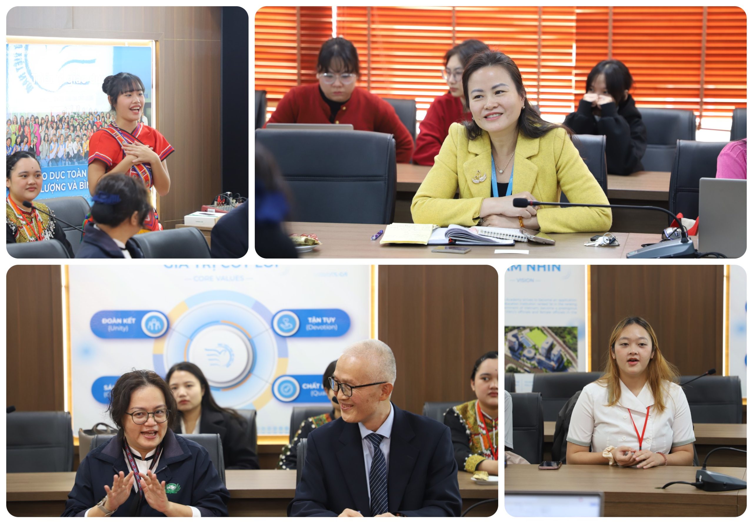 Buổi làm việc khép lại bằng nghi thức trao tặng quà lưu niệm mang dấu ấn văn hóa của hai cơ sở giáo dục, đánh dấu một bước tiến mới trong quan hệ hợp tác quốc tế của Học viện Phụ nữ Việt Nam, hướng tới mục tiêu mở rộng không gian học tập toàn cầu và nâng cao năng lực hội nhập cho sinh viên trong bối cảnh giáo dục đại học ngày càng gắn kết với thế giới.