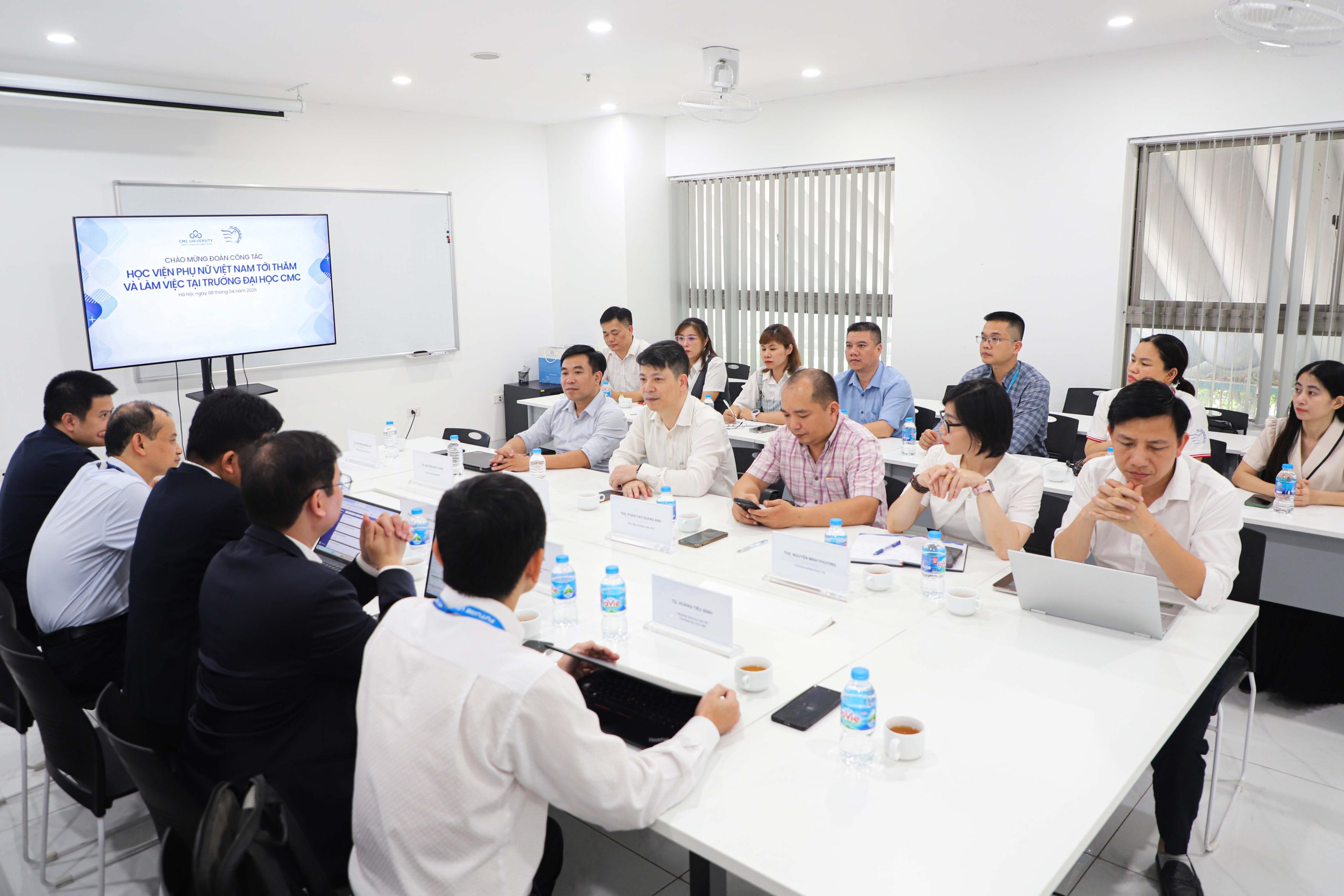 Buổi làm việc của Học viện Phụ nữ Việt Nam với Trường Đại học CMC không chỉ là dịp trao đổi kinh nghiệm mà còn mở ra cơ hội hợp tác trong đào tạo, nghiên cứu khoa học và chuyển giao công nghệ.