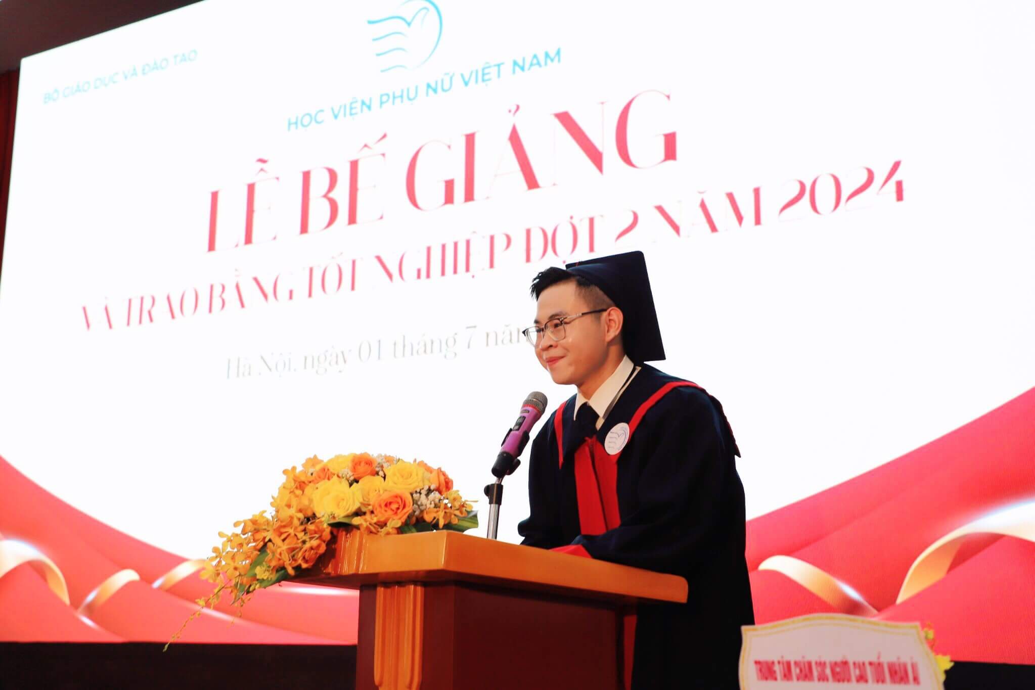 Trong niềm vui ngày tốt nghiệp, đại diện cho các tân cử nhân, sinh viên Nguyễn Văn Nam – Sinh viên K8 Truyền thông đa phương tiện, Thủ khoa đầu ra của Học viện đã thay mặt cho các tân thạc sĩ, tân cử nhân phát biểu cảm tưởng trong buổi Lễ. Em gửi lời tri ân sâu sắc tới thầy cô, những người lái đò tận tụy luôn sát cánh bên các học trò trong chặng đường 4 năm học và chắc chắn là cả chặng đường sắp tới. Những kiến thức, tình cảm mà thầy cô trao cho các tân cử nhân hôm nay sẽ là hành trang cho những dự định và thành công trong tương lai của mỗi cử nhân Học viện Phụ nữ Việt Nam.