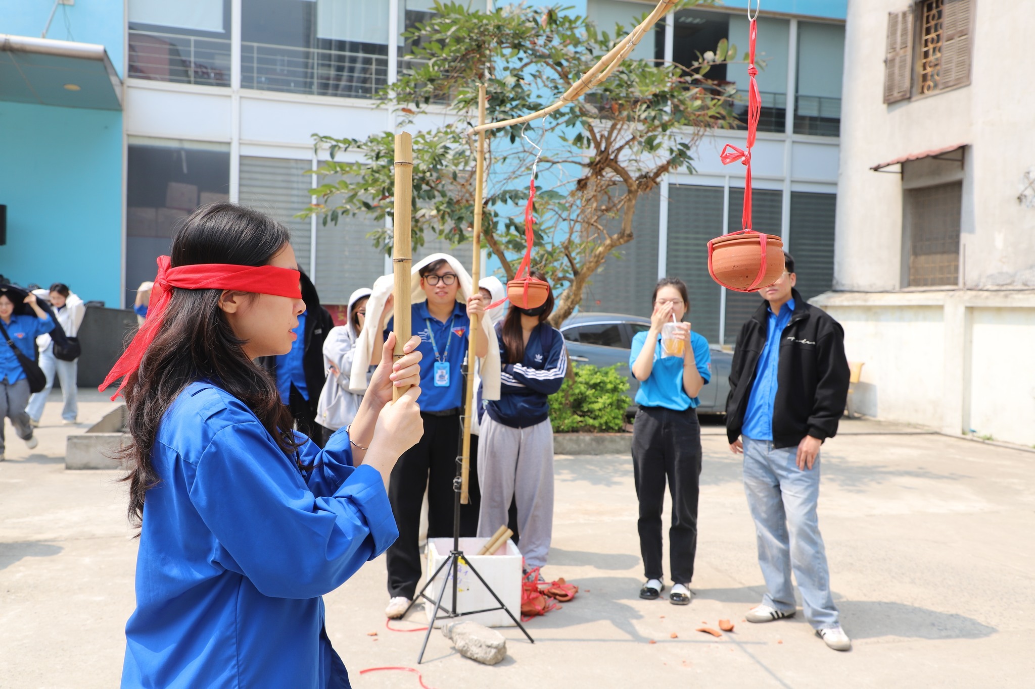 Mỗi vòng có một người chơi tham gia. Người chơi sẽ chuyền gậy qua từng vòng đến người chơi cuối cùng. Đội nào không vượt qua được một vòng bất kỳ, hoặc rơi gậy xuống đất trong quá trình chuyền, thì người chơi tiếp theo phải bắt đầu lại từ đầu. Đội nào vượt qua hết các vòng trong thời gian ngắn nhất sẽ giành chiến thắng đòi hỏi sự nhanh nhẹn, khéo léo và tinh thần đồng đội. Đây là cơ hội để các bạn sinh viên thể hiện khả năng vận động toàn diện và sức mạnh tập thể. Không khí hội thao đầy sức nóng với những tiếng reo hò, cổ vũ, đặc biệt là ở vòng đập niêu đất. Có những pha đập trượt khiến khán giả cười nghiêng ngả, nhưng cũng có những cú vung gậy chính xác đem về chiến thắng giòn giã. Kết quả chung cuộc, ngành Quản trị dịch vụ Du lịch và Lữ hành đã giành chiến thắng cao nhất ở trò chơi này.
