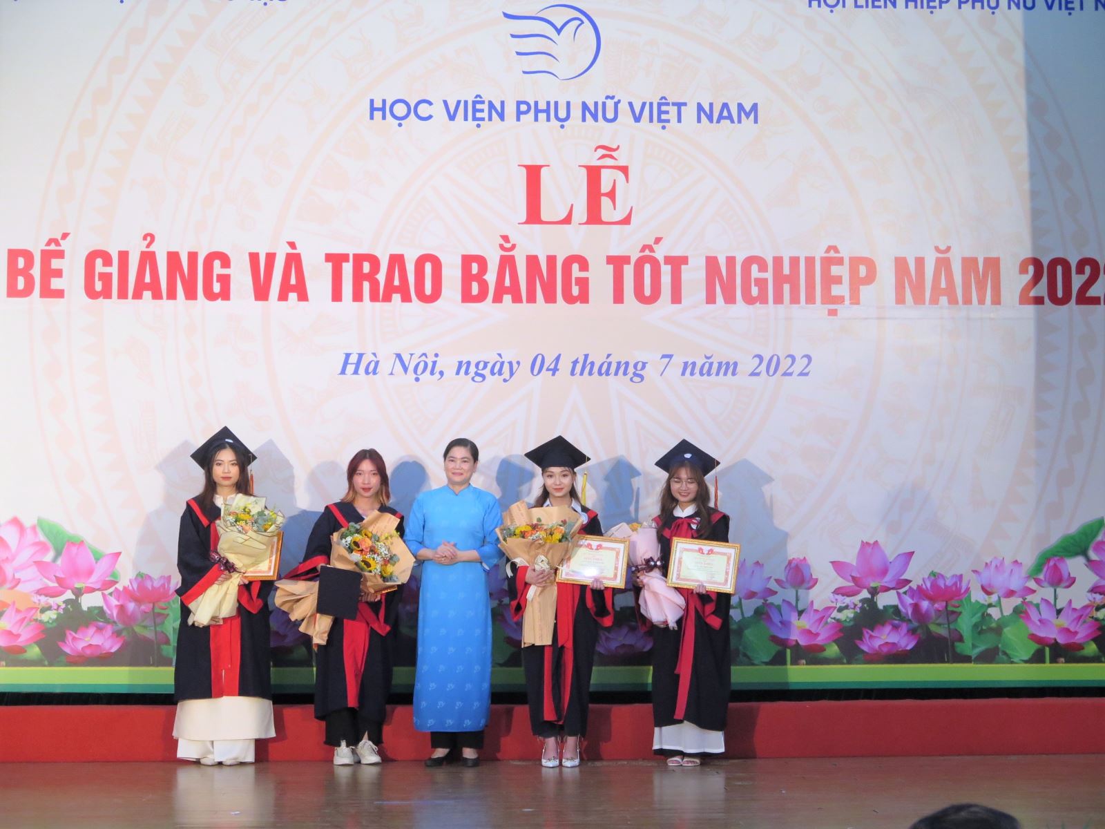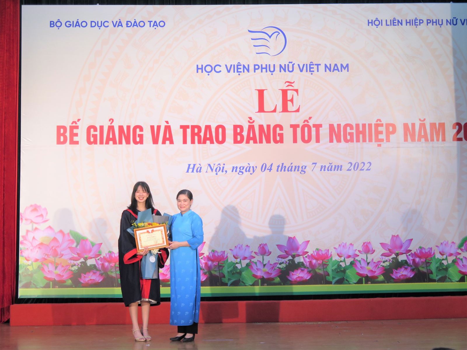 TS. Đỗ Thị Thu Thảo – Phó Chủ tịch Hội LHPN Việt Nam chúc mừng thủ khoa tốt nghiệp của Học viện
