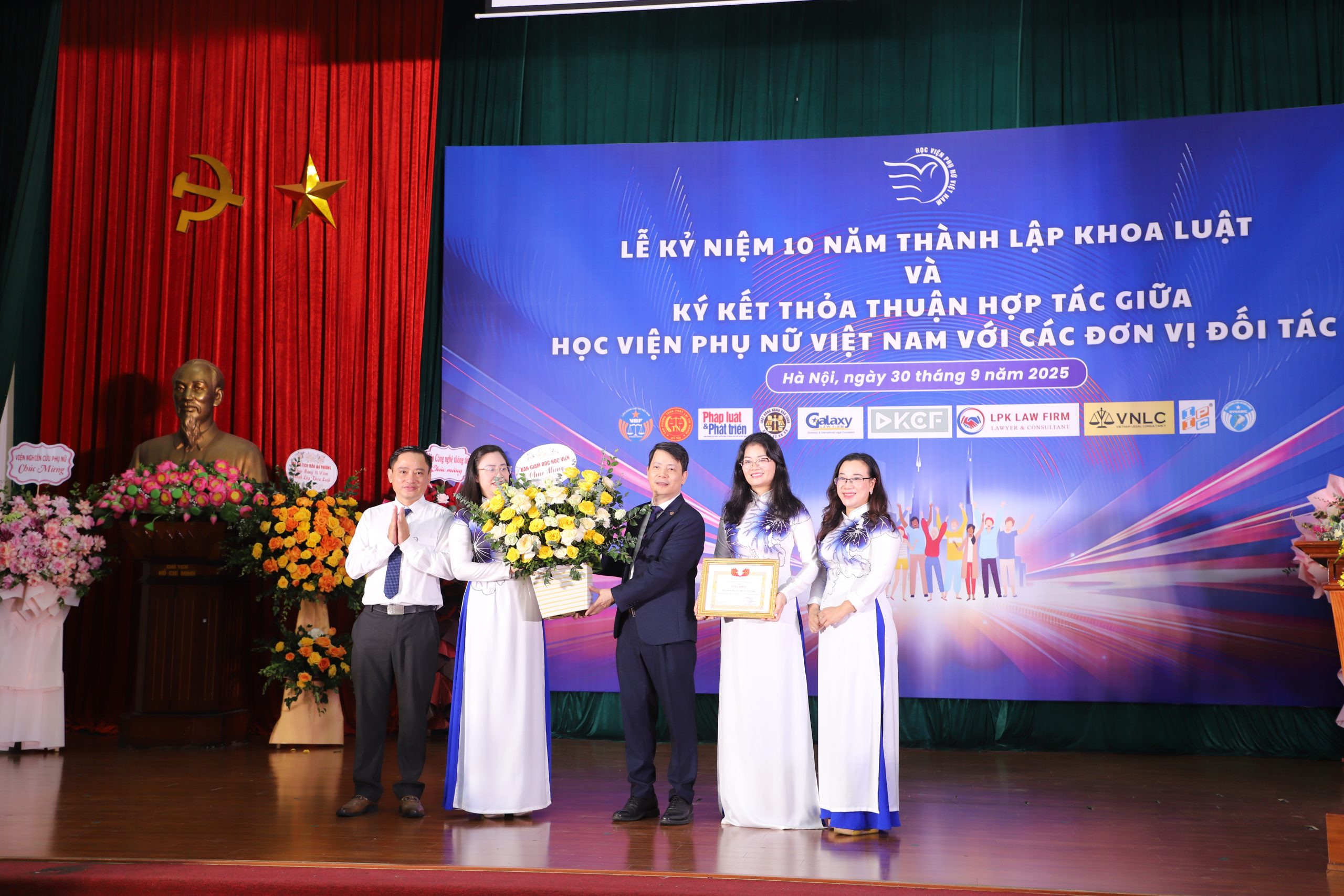 Phụ nữ Việt Nam thay mặt Đảng ủy, Ban Giám đốc gửi lời chúc mừng đến tập thể cán bộ, giảng viên, sinh viên và cựu sinh viên Khoa Luật, đồng thời ghi nhận sự đồng hành của các chuyên gia, luật sư, doanh nhân và đối tác trong suốt thời gian qua.