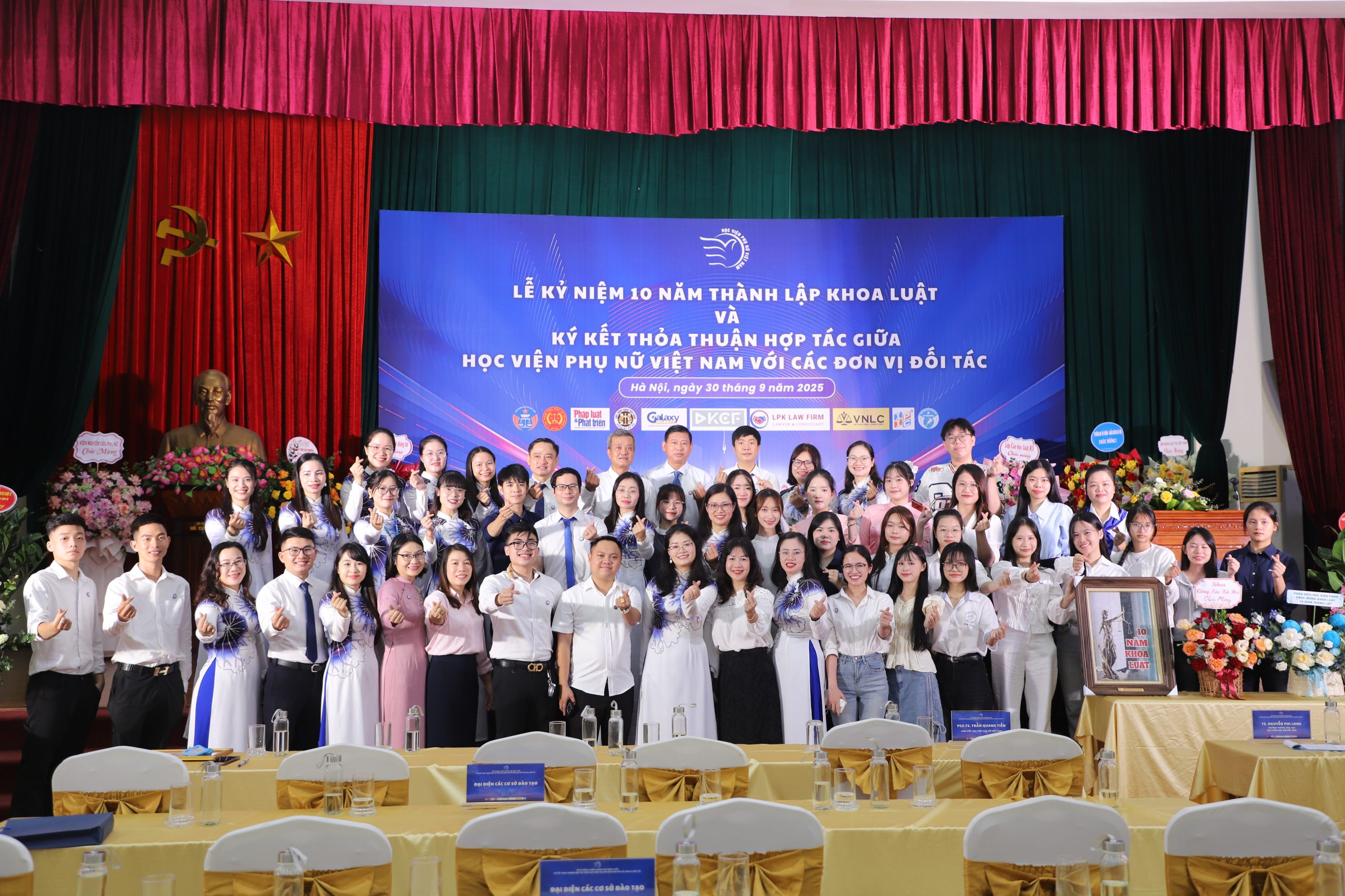 Một điểm nhấn của lễ kỷ niệm là hoạt động ký kết thỏa thuận hợp tác giữa Học viện Phụ nữ Việt Nam và các đơn vị đối tác, bao gồm đoàn luật sư, công ty luật, tạp chí chuyên ngành, văn phòng luật sư, văn phòng thừa phát lại. Các thỏa thuận tập trung vào đào tạo, nghiên cứu, bồi dưỡng kỹ năng nghề, tổ chức cuộc thi nghề luật, hỗ trợ sinh viên thực tập và kết nối học thuật. Đây là bước đi quan trọng để gắn kết chặt chẽ giữa đào tạo lý luận với thực tiễn nghề nghiệp, giúp sinh viên Khoa Luật có thêm nhiều cơ hội trải nghiệm và trưởng thành.