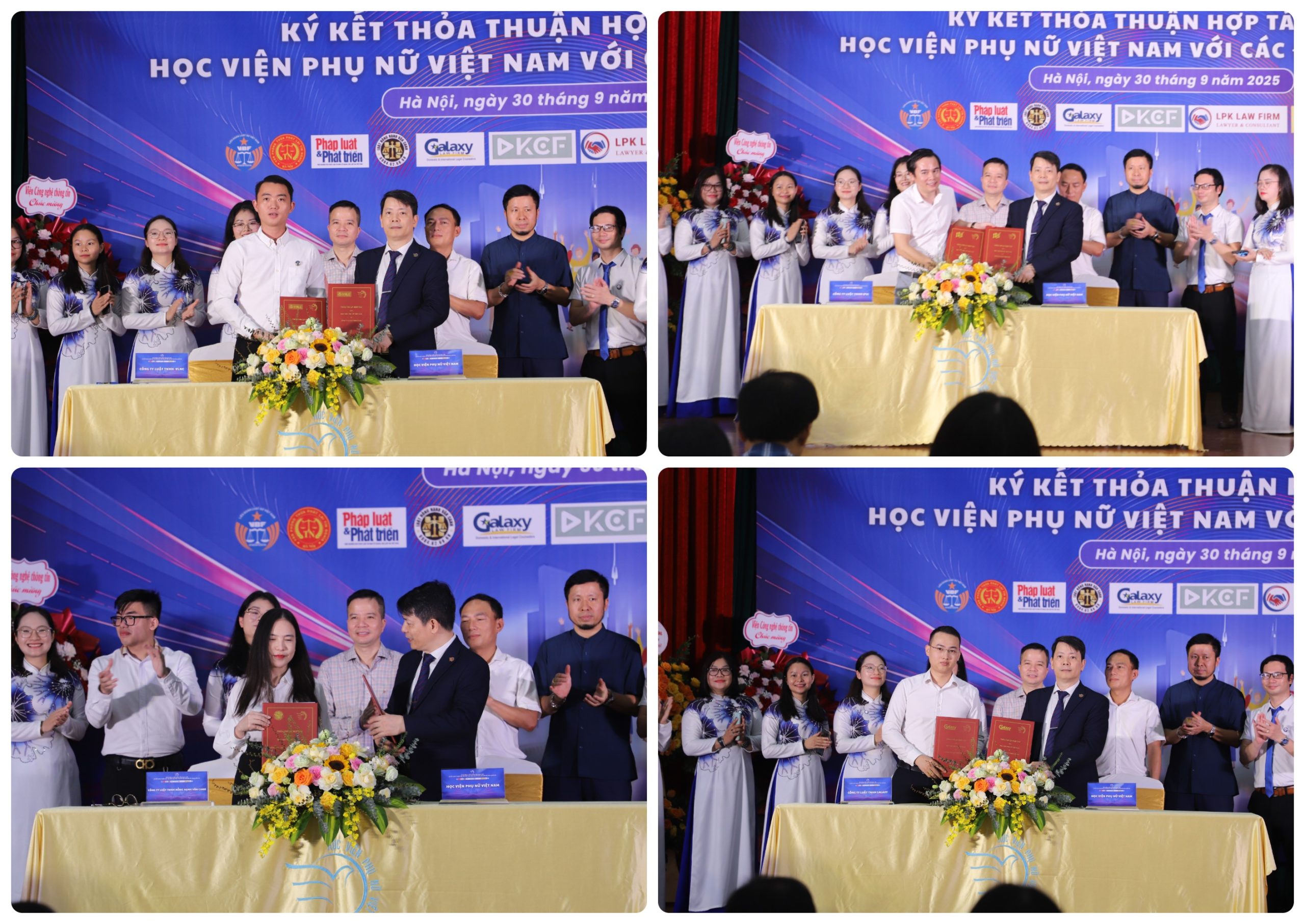 Một điểm nhấn của lễ kỷ niệm là hoạt động ký kết thỏa thuận hợp tác giữa Học viện Phụ nữ Việt Nam và các đơn vị đối tác, bao gồm đoàn luật sư, công ty luật, tạp chí chuyên ngành, văn phòng luật sư, văn phòng thừa phát lại. Các thỏa thuận tập trung vào đào tạo, nghiên cứu, bồi dưỡng kỹ năng nghề, tổ chức cuộc thi nghề luật, hỗ trợ sinh viên thực tập và kết nối học thuật. Đây là bước đi quan trọng để gắn kết chặt chẽ giữa đào tạo lý luận với thực tiễn nghề nghiệp, giúp sinh viên Khoa Luật có thêm nhiều cơ hội trải nghiệm và trưởng thành.