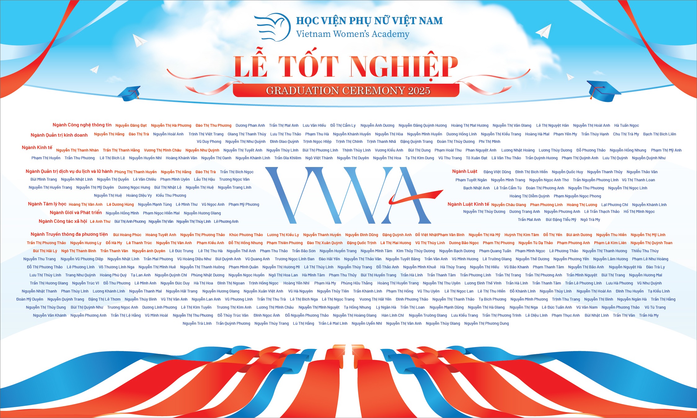 Tạm biệt giảng đường, mỗi tân cử nhân sẽ bước vào một hành trình mới – hành trình của những ước mơ lớn hơn, những mục tiêu cụ thể hơn và những trải nghiệm phong phú hơn. Nhưng dù ở đâu, làm gì, thì những năm tháng thanh xuân ngôi nhà chung Học viện Phụ nữ Việt Nam sẽ luôn là hành trang quý báu – nơi đã vun đắp tri thức, nuôi dưỡng nhân cách và thắp sáng khát vọng sống có trách nhiệm và cống hiến.