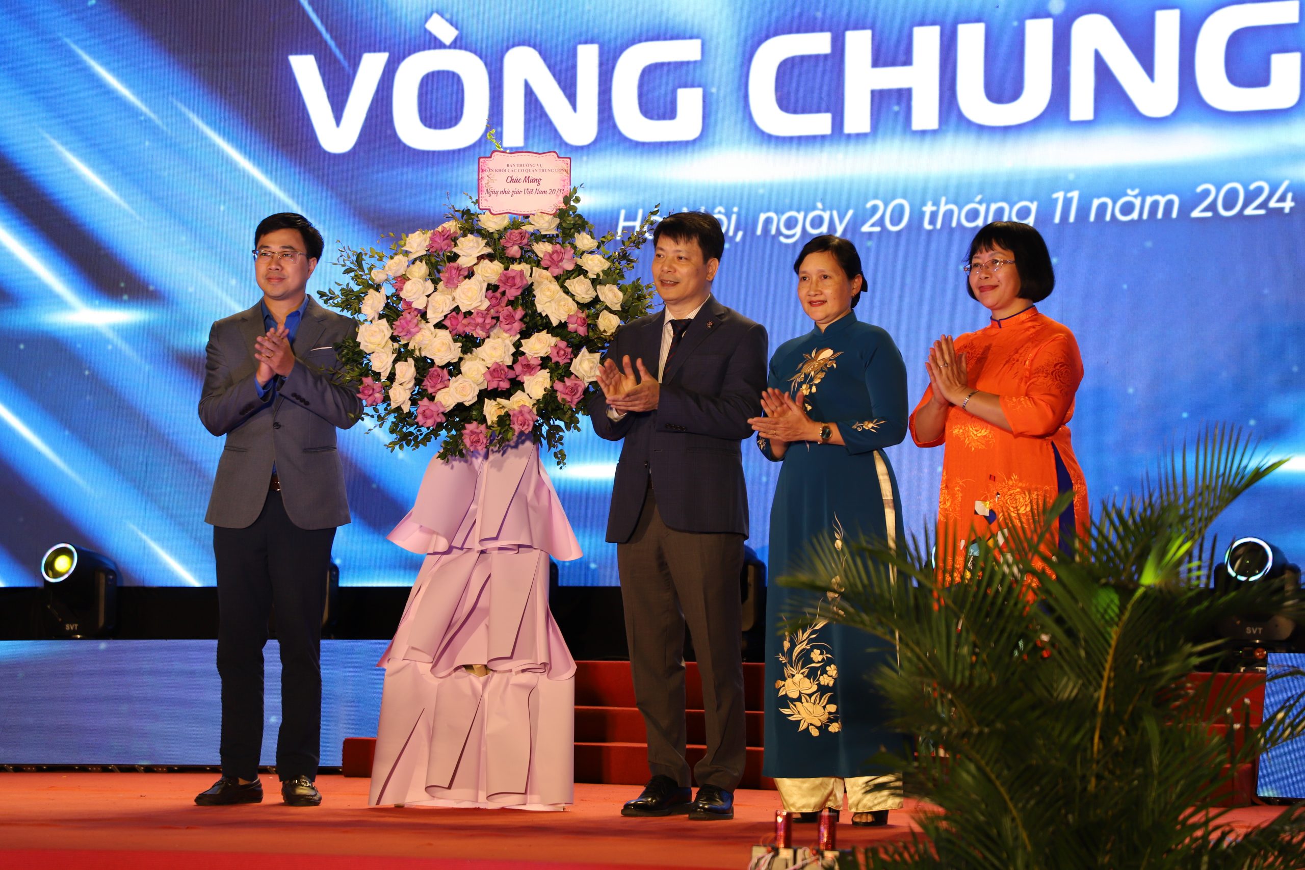 Đồng chí Bùi Hoàng Tùng – Bí thư Đoàn Khối các cơ quan T.Ư tặng hoa chúc mừng Học viện Phụ nữ Việt Nam nhân dịp 20/11