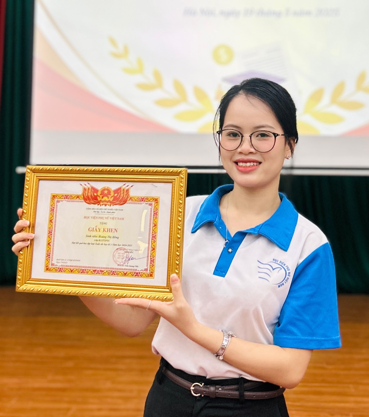 Với sinh viên đạt loại Xuất sắc – những gương mặt tiêu biểu nhất trong học kỳ, việc được trao Giấy khen không chỉ là vinh danh cá nhân mà còn lan toả cảm hứng tích cực đến cộng đồng sinh viên toàn Học viện. Mỗi giấy khen, mỗi lá thư chúc mừng đều mang trong đó thông điệp sâu sắc: Học viện Phụ nữ Việt Nam luôn đồng hành, tin tưởng và ghi nhận sự cố gắng của từng sinh viên trên hành trình học tập và trưởng thành.