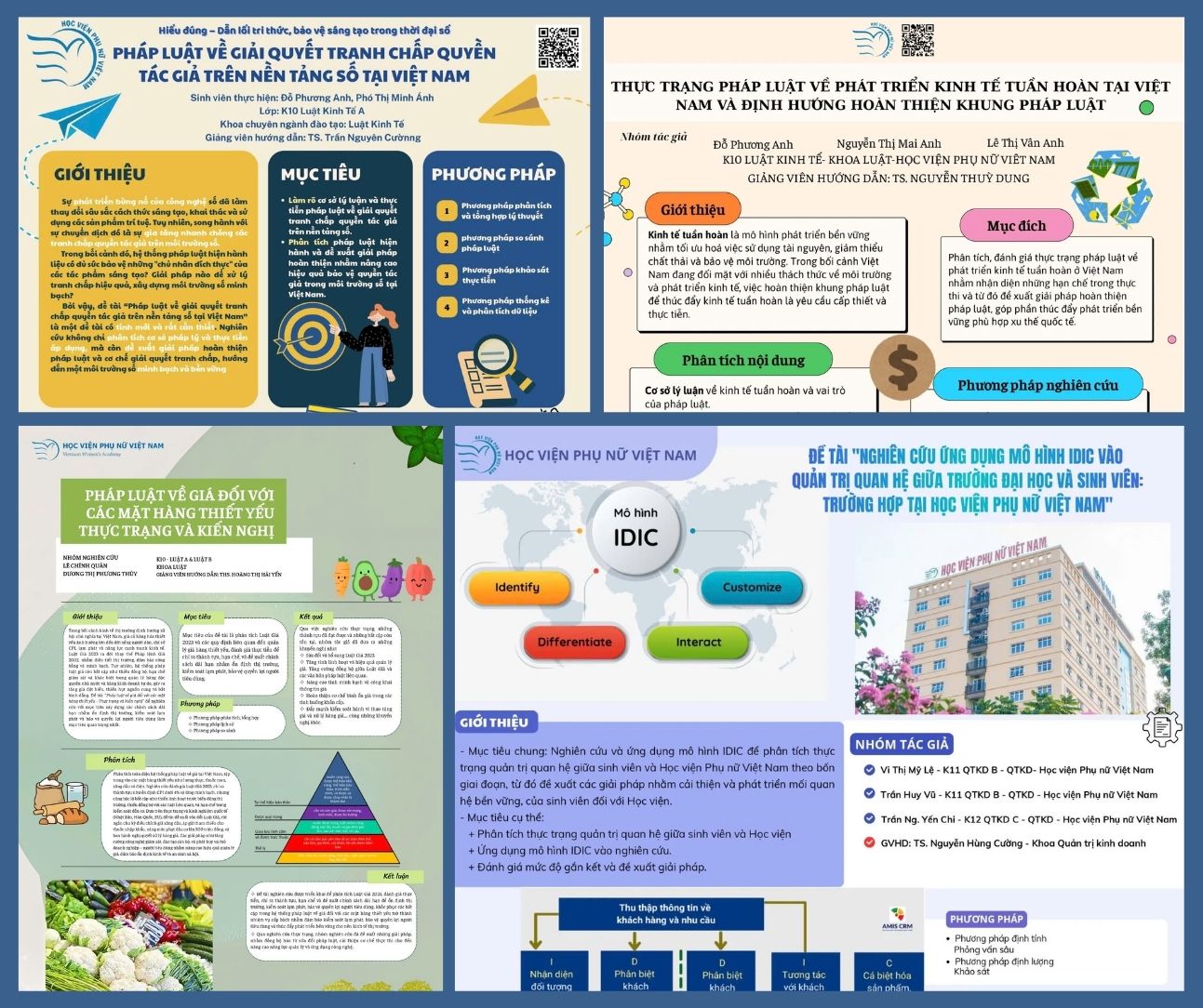 Trên hành trình khẳng định thương hiệu đào tạo gắn với thực tiễn và năng lực nghiên cứu, Học viện Phụ nữ Việt Nam đã và đang xây dựng một môi trường học thuật cởi mở, nơi sinh viên được khuyến khích dấn thân vào các dự án nghiên cứu ngay từ những năm đầu đại học. Năm học 2024–2025 ghi nhận sự tham gia mạnh mẽ của sinh viên đến từ tất cả các ngành học.