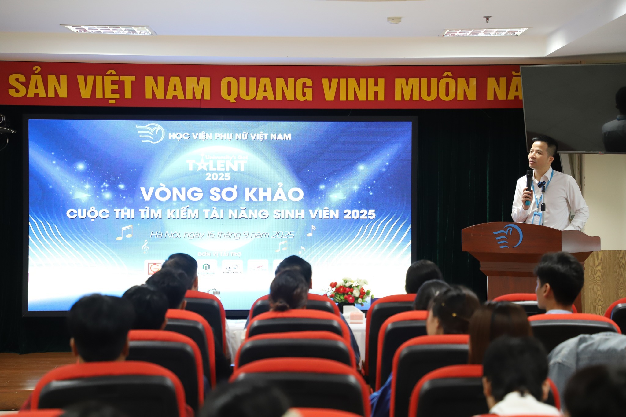 Phát biểu tại sự kiện, TS. Nguyễn Phi Long – Phó Bí thư Đảng ủy, Trưởng phòng Đào tạo Học viện Phụ nữ Việt Nam nhấn mạnh: “Cuộc thi Tìm kiếm tài năng sinh viên 2025 không chỉ là sân chơi bổ ích, nơi các em thể hiện tài năng và niềm đam mê, mà còn là cơ hội để khẳng định bản lĩnh và sự tự tin của tuổi trẻ. Học viện Phụ nữ Việt Nam rất vinh dự được đón tiếp các bạn thí sinh đến từ khắp mọi miền đất nước. Tôi chúc các em mạnh dạn, tự tin tỏa sáng theo cách riêng của mình. Đồng thời, tôi tin tưởng Ban Giám khảo sẽ làm việc công bằng, khách quan để lựa chọn ra những gương mặt xứng đáng nhất bước tiếp vào vòng trong. Mong rằng qua cuộc thi, chúng ta sẽ tìm thấy những nhân tố đặc biệt, góp phần làm phong phú đời sống tinh thần của sinh viên cả nước”.