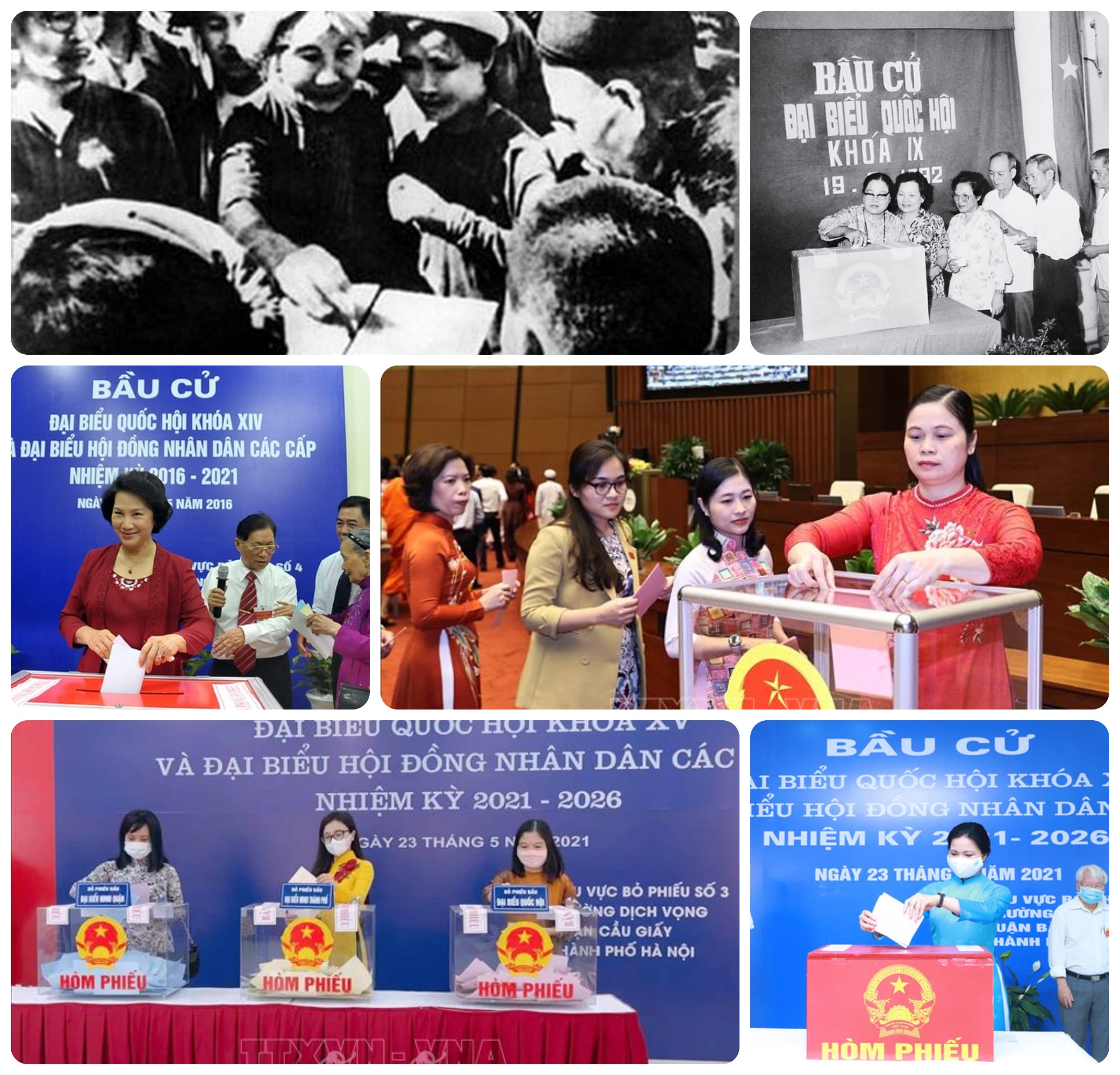 Các nữ cử tri tham gia bỏ phiếu bầu đại biểu Hội đồng Nhân dân các cấp, các thời kỳ