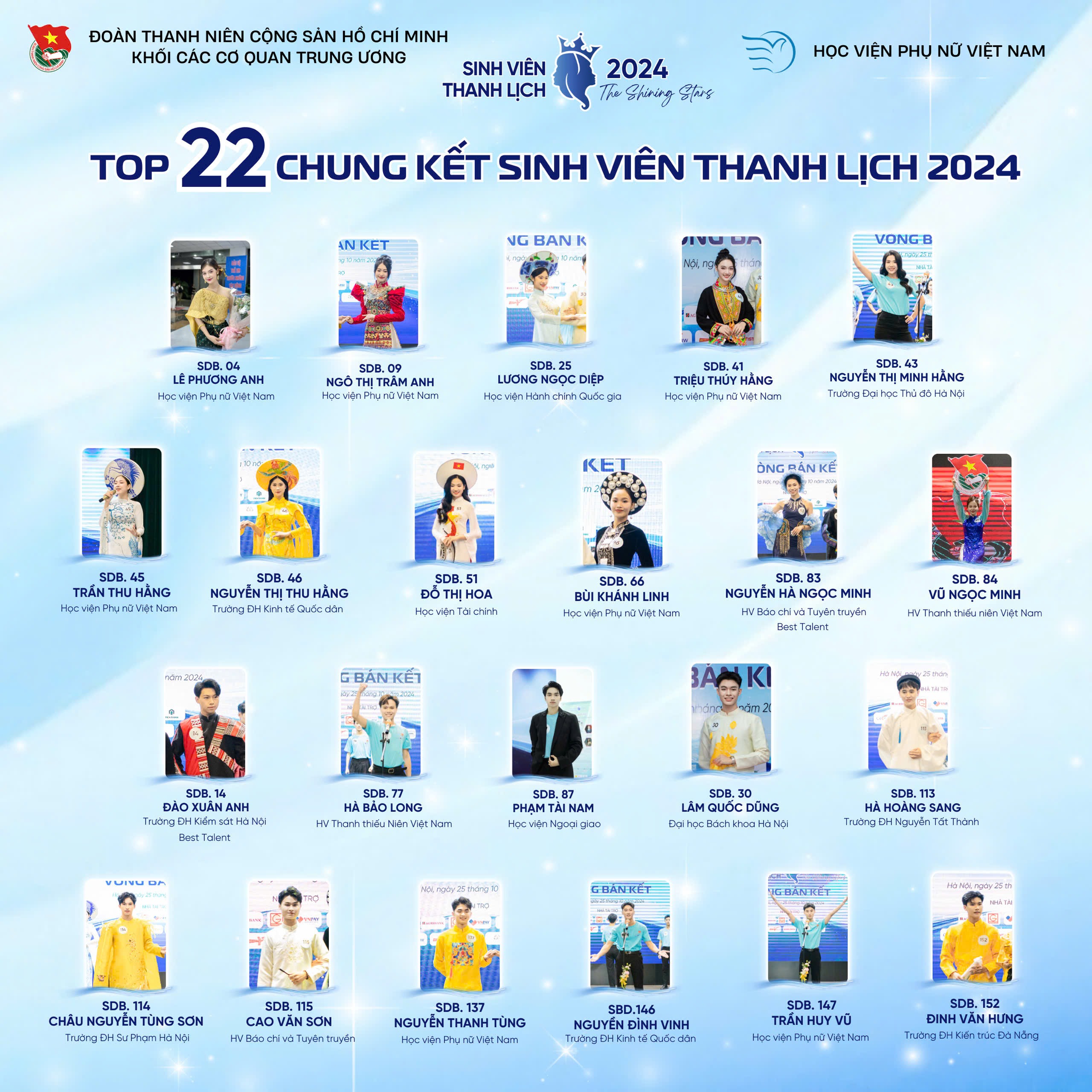 Danh sách Top 22 thí sinh bước vào vòng chung kết: