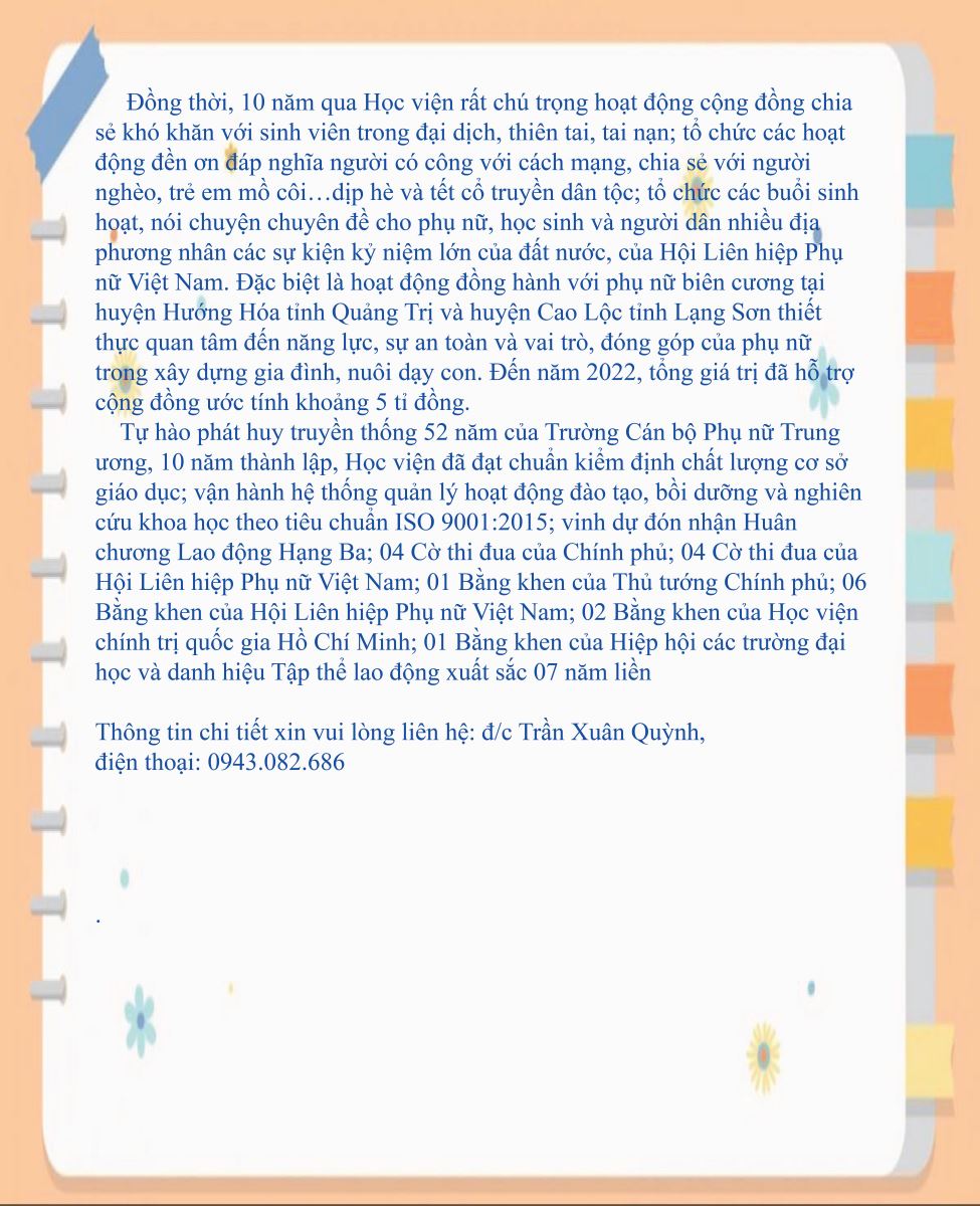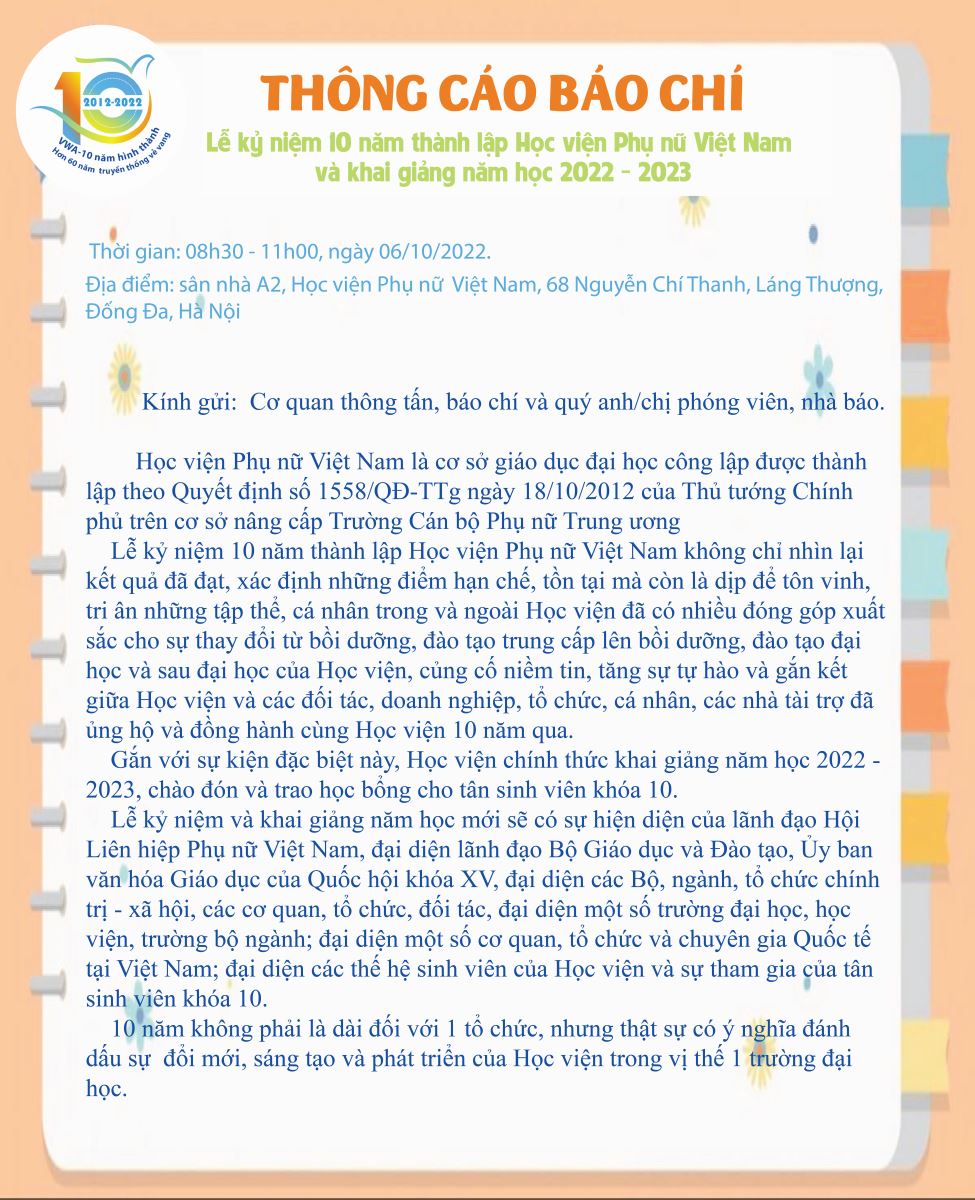 Thông cáo báo chí Lễ kỉ niệm 10 năm thành lập Học viện Phụ nữ Việt Nam